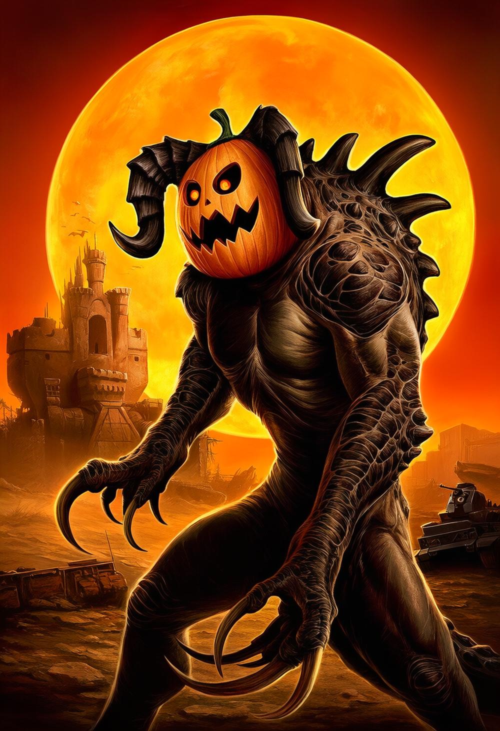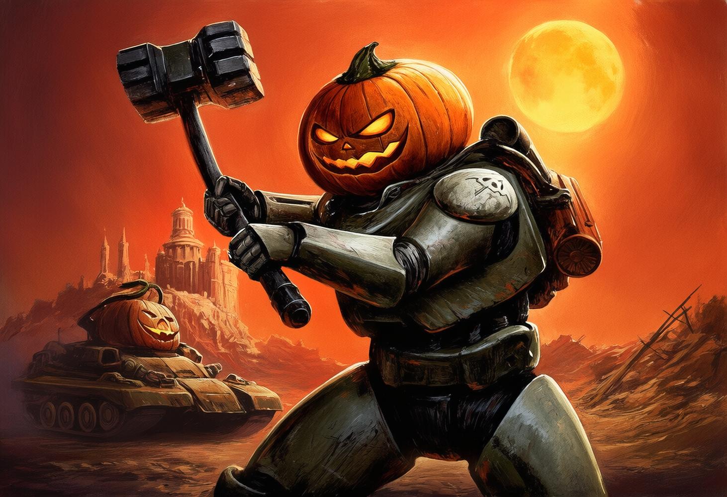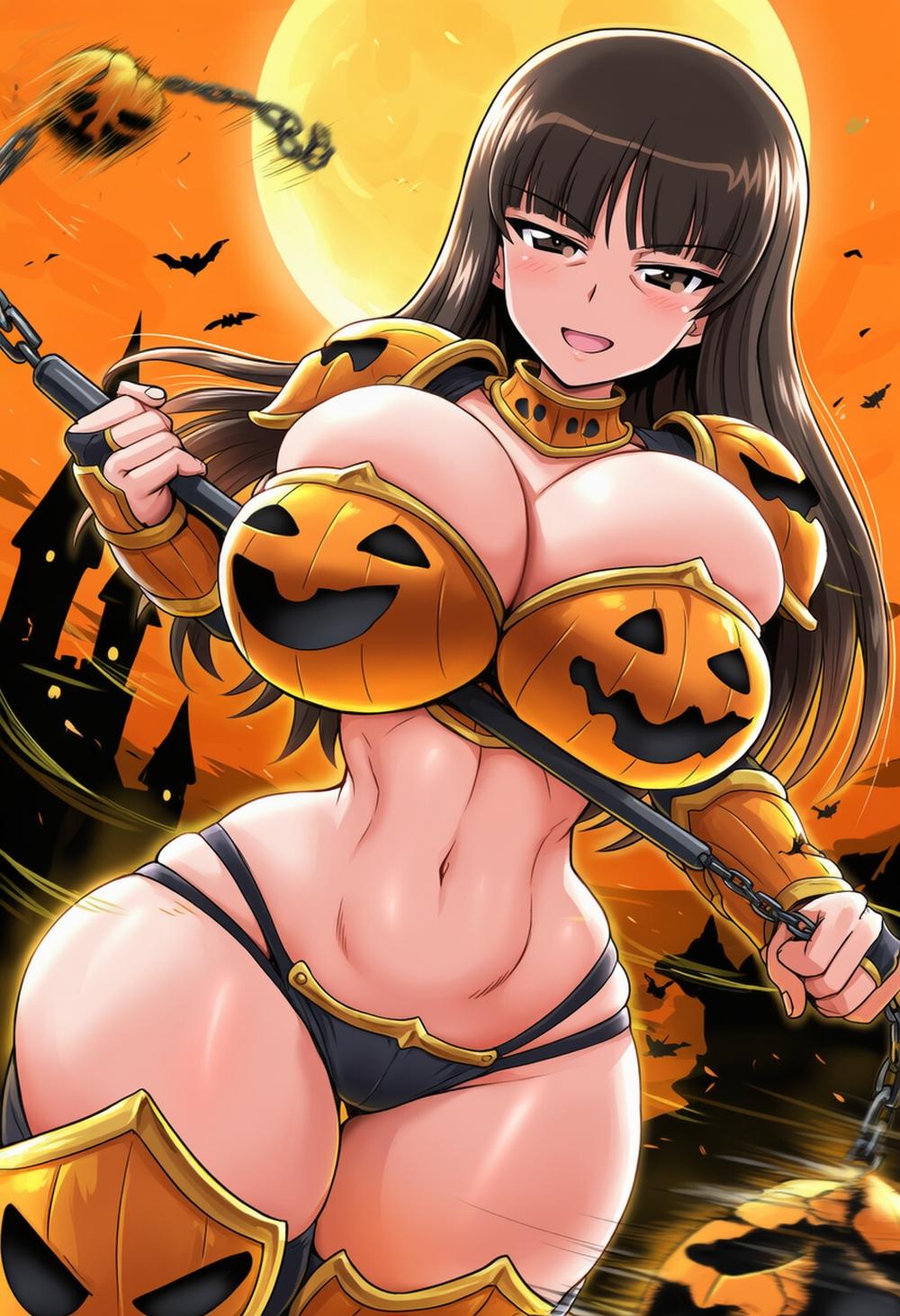 ハロウィンカボチャアーマーコスプレ人妻&世紀末パワーアーマー