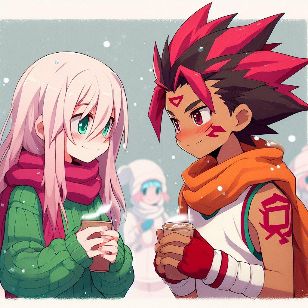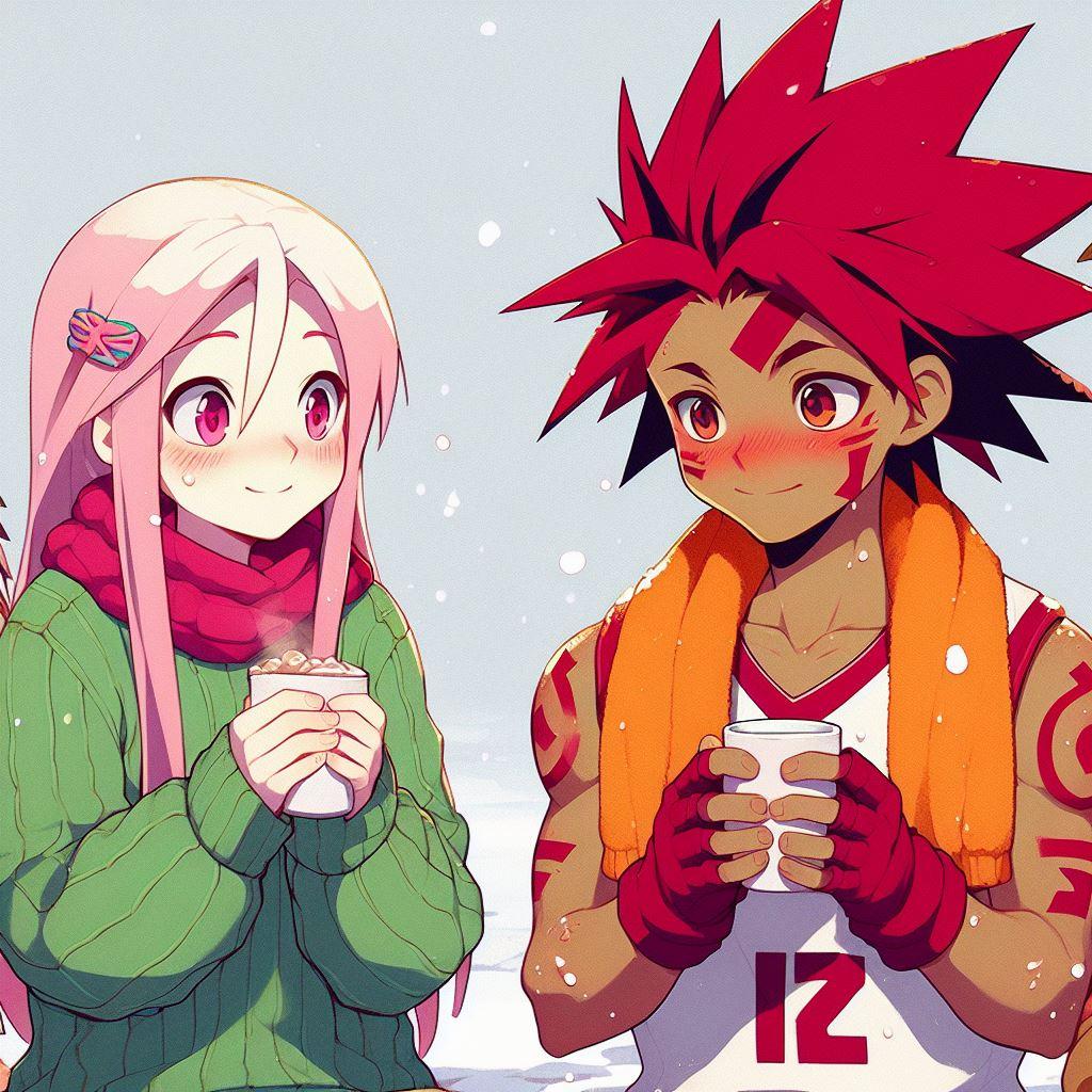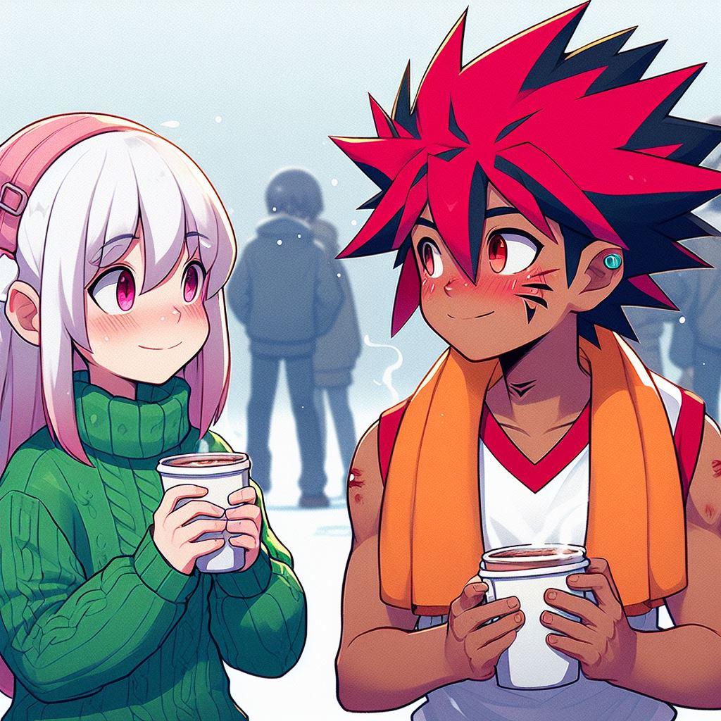 寒風の下の体育の授業を終えたタケルに、ももちゃんがココアであったまろと言うほのぼのシーンを作りたいんだけど