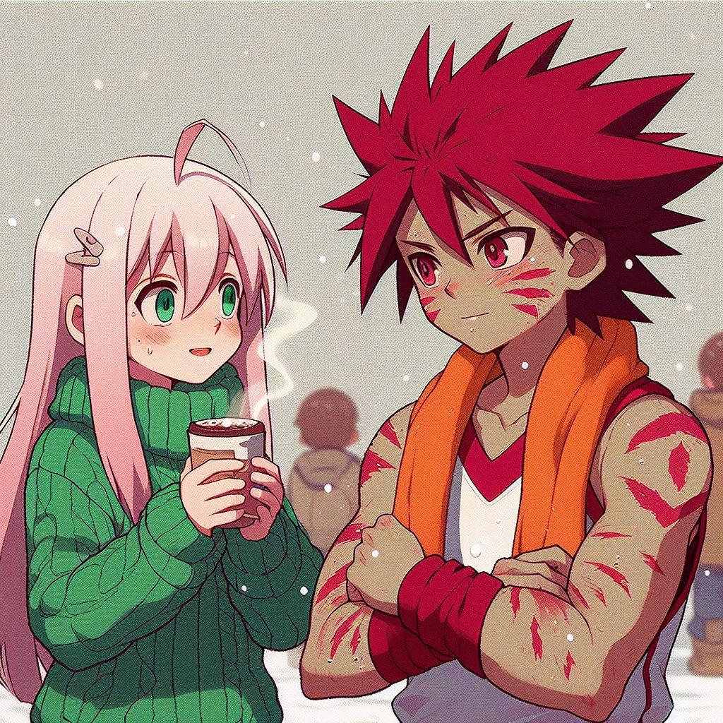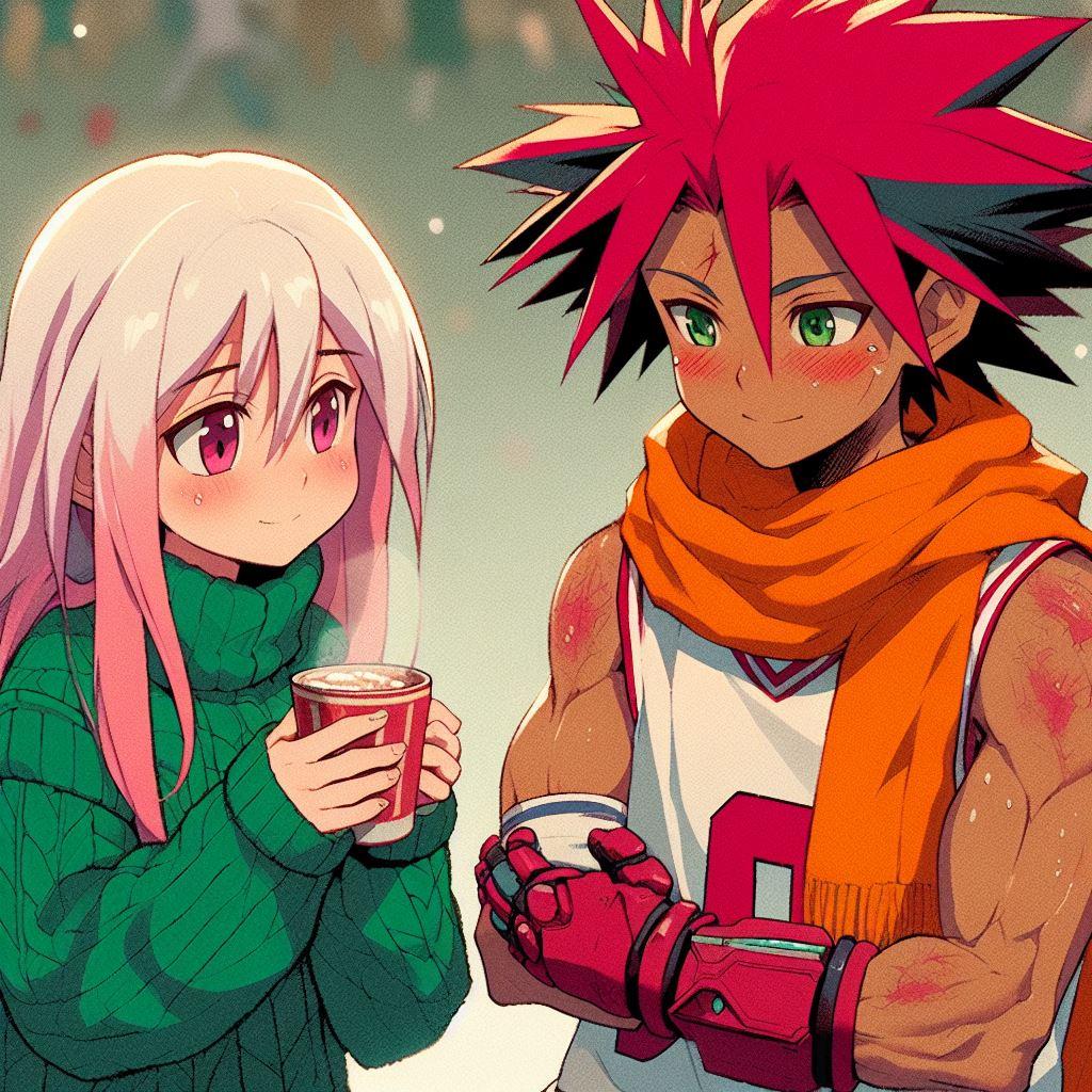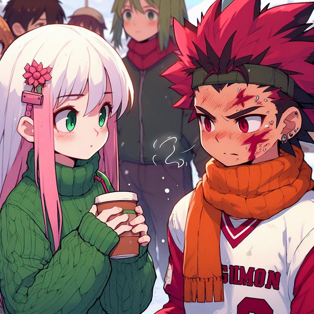 寒風の下の体育の授業を終えたタケルに、ももちゃんがココアであったまろと言うほのぼのシーンを作りたいんだけど