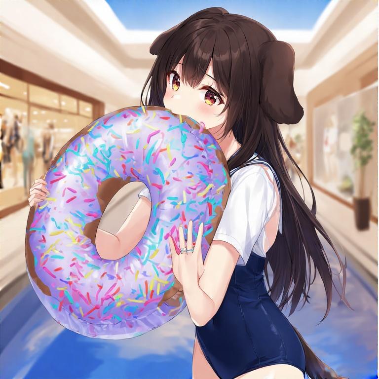 浮き輪を膨らましてるかもしれないし食べてるかもしれない