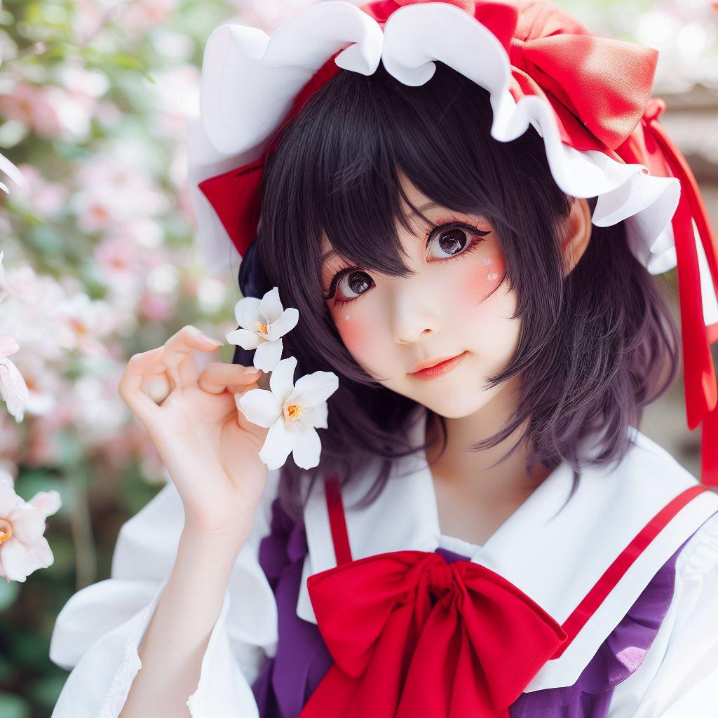【DALL-E3】東方projectをイメージしたコスプレする1人の可愛い女の子