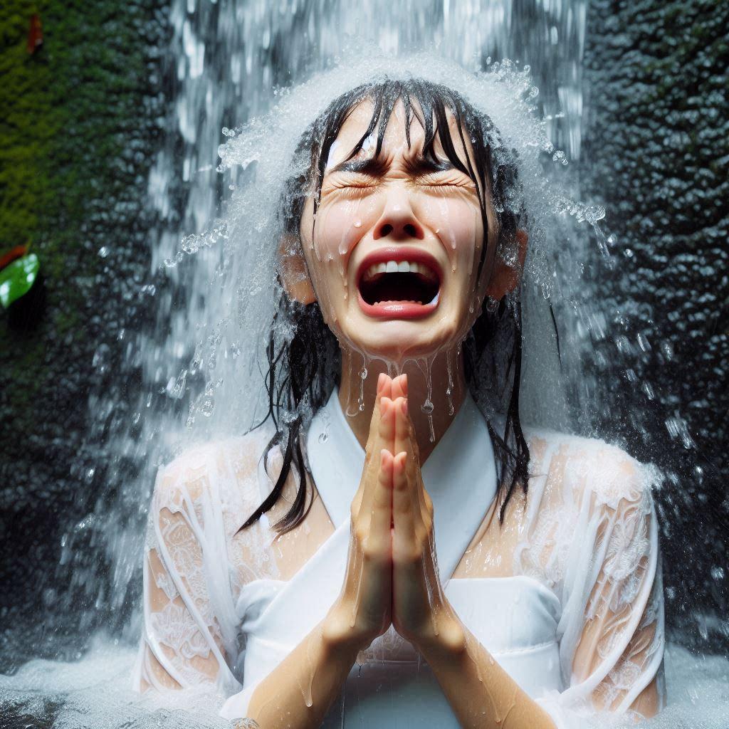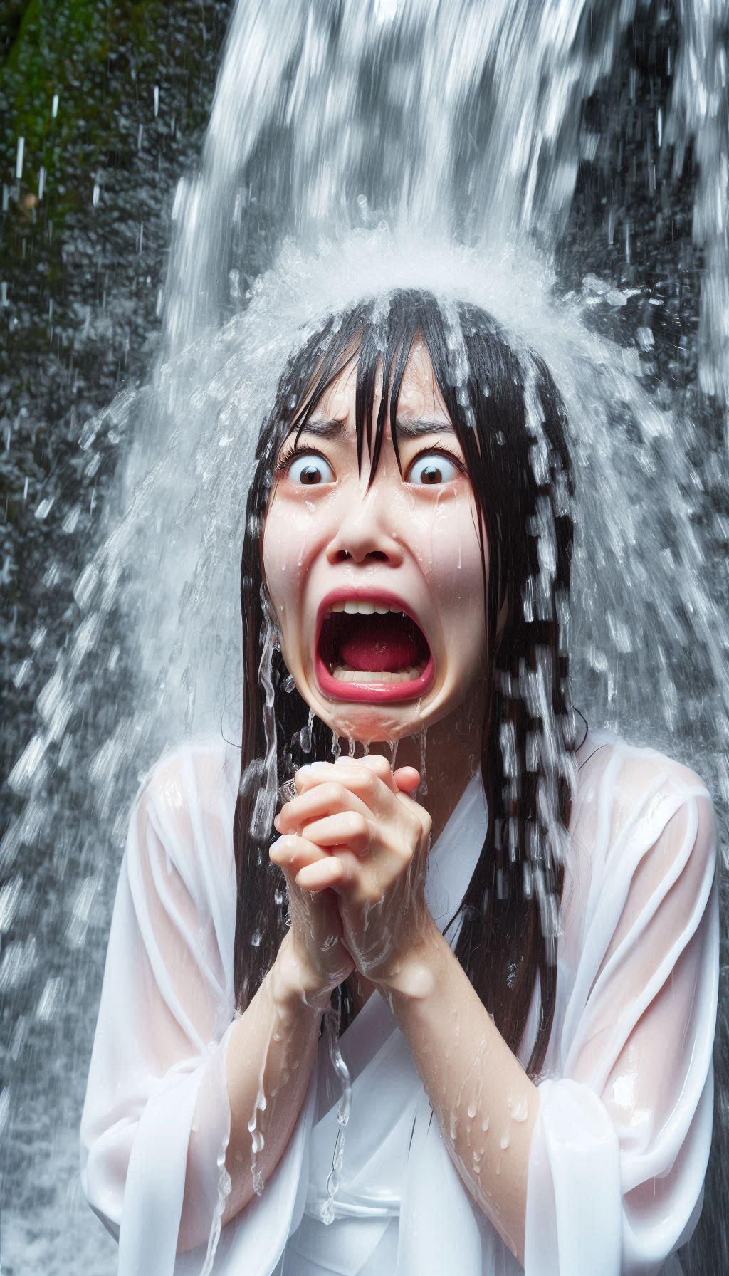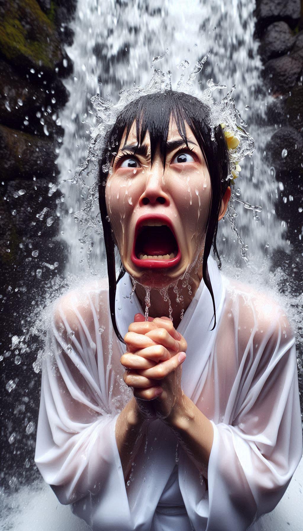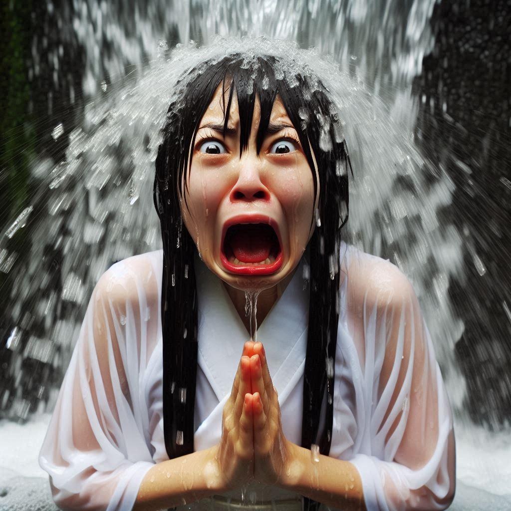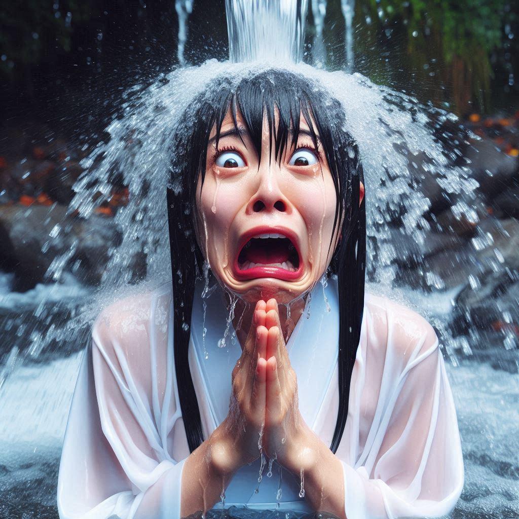 最初は、滝に打たれる可憐で美しいお姉さんを描くつもりだったんです…本当に。でも、気づけばいつものように変顔が爆誕していましたw
