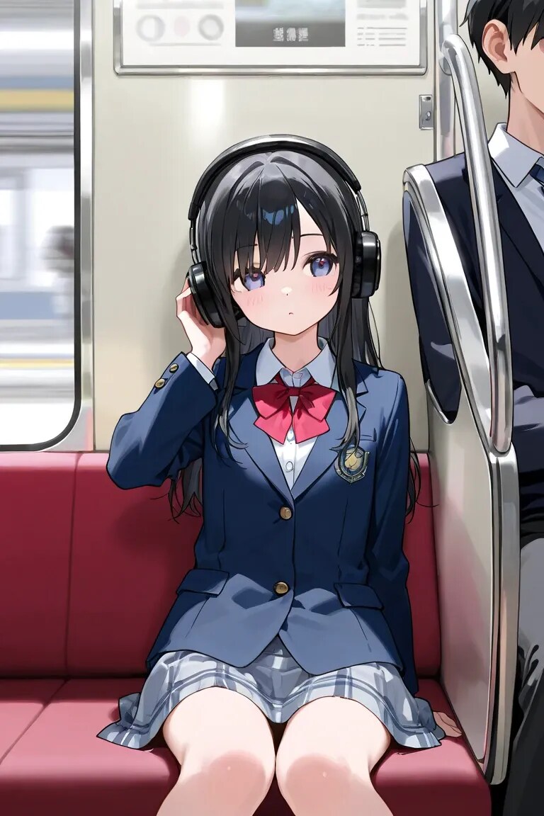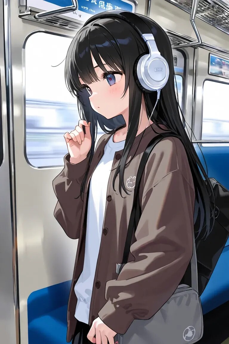 黒髪ロングのヘッドホンの女の子、私が以前依頼を受けた絵です。