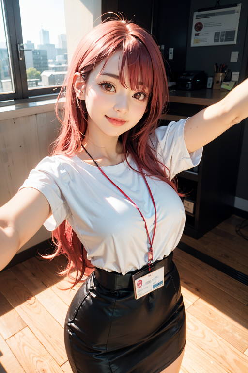 女子社員 白Tシャツ 自撮り
