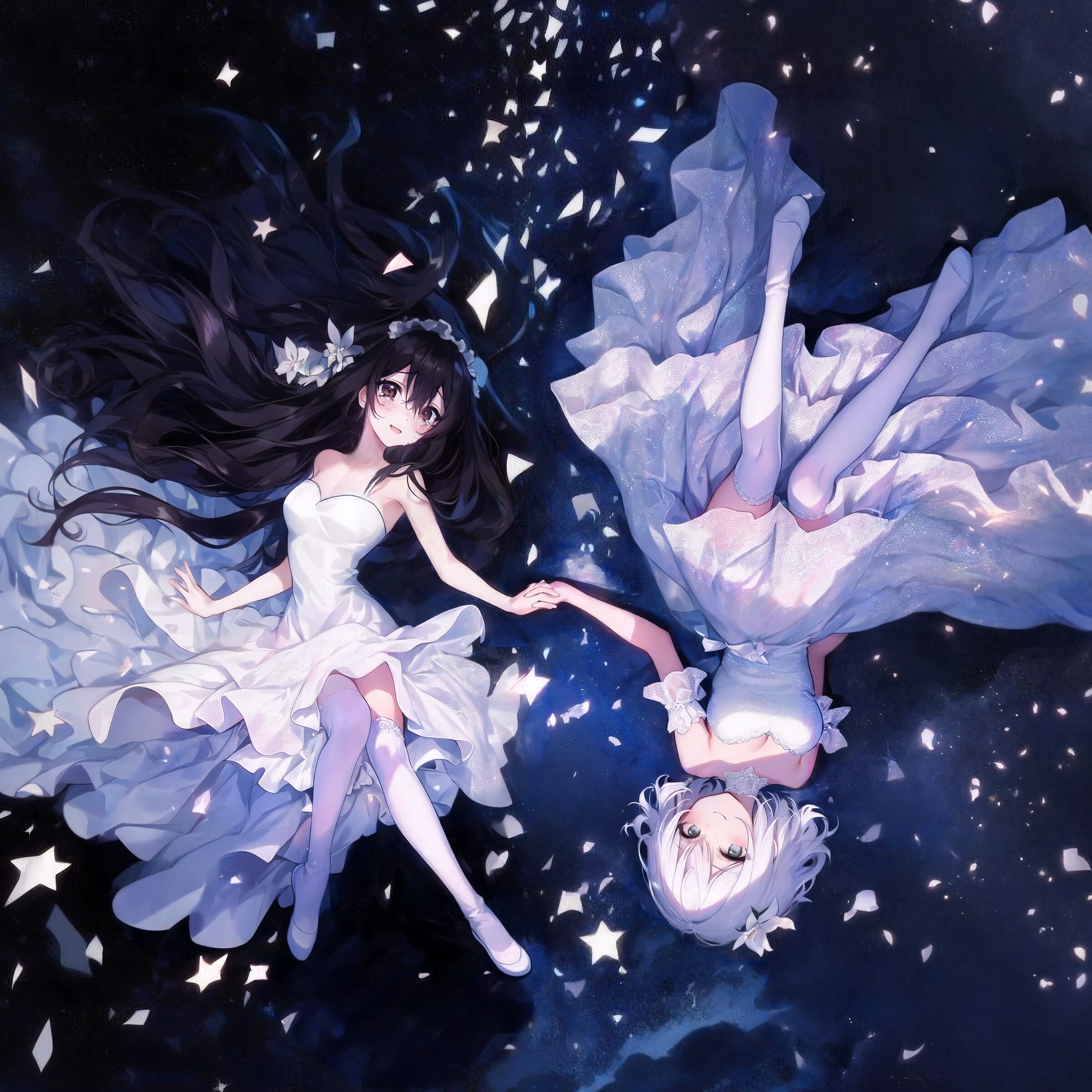 手を握り合った少女たちは、やがて白い粒子へと変わっていき、二筋の流星として明けの夜空を流れる光となった。