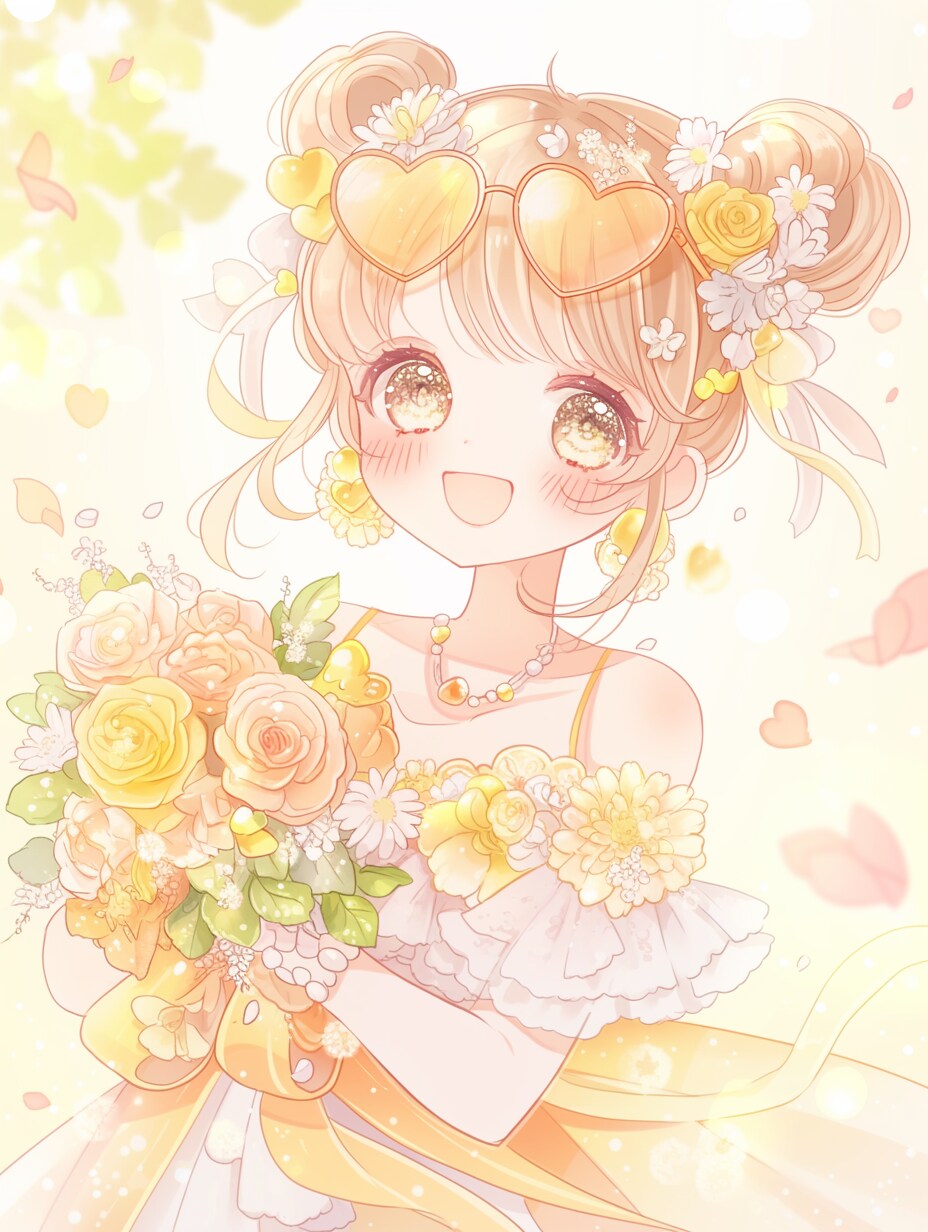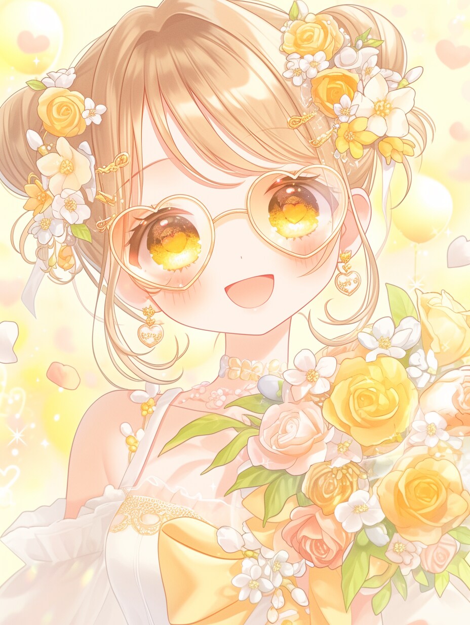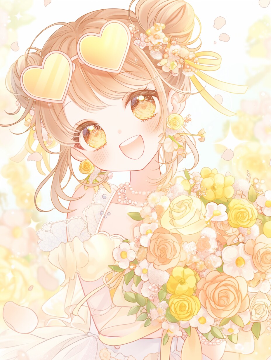 笑顔が弾ける、ハートと花が織りなす春の物語