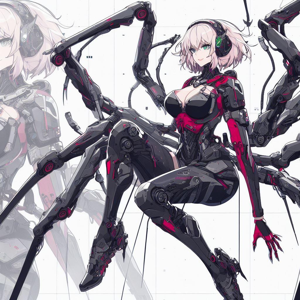 次は三女のクイ姉です!クイ姉は頭が良いので治療部隊に所属してます蜘蛛の糸は強靭でしなやか手術糸にも使えるし機械の補修にもなんでも使える万能なんですよ知ってました?クイ姉は機械の人も生身部分が多い人もどっちも直せる数少ない人なんですよ〜 私もこの前カイ姉にふっ飛ばされた脚くっつけてもらいました〜クイ姉大好き〜