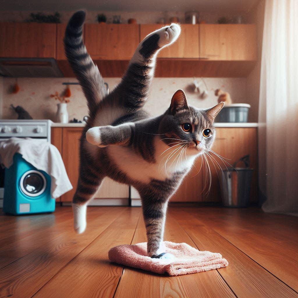 あまりに踊りすぎて床に毛をまき散らしていたため、飼い主に床掃除を命じられたがものの数分でブレイクダンスに移行したらしい。