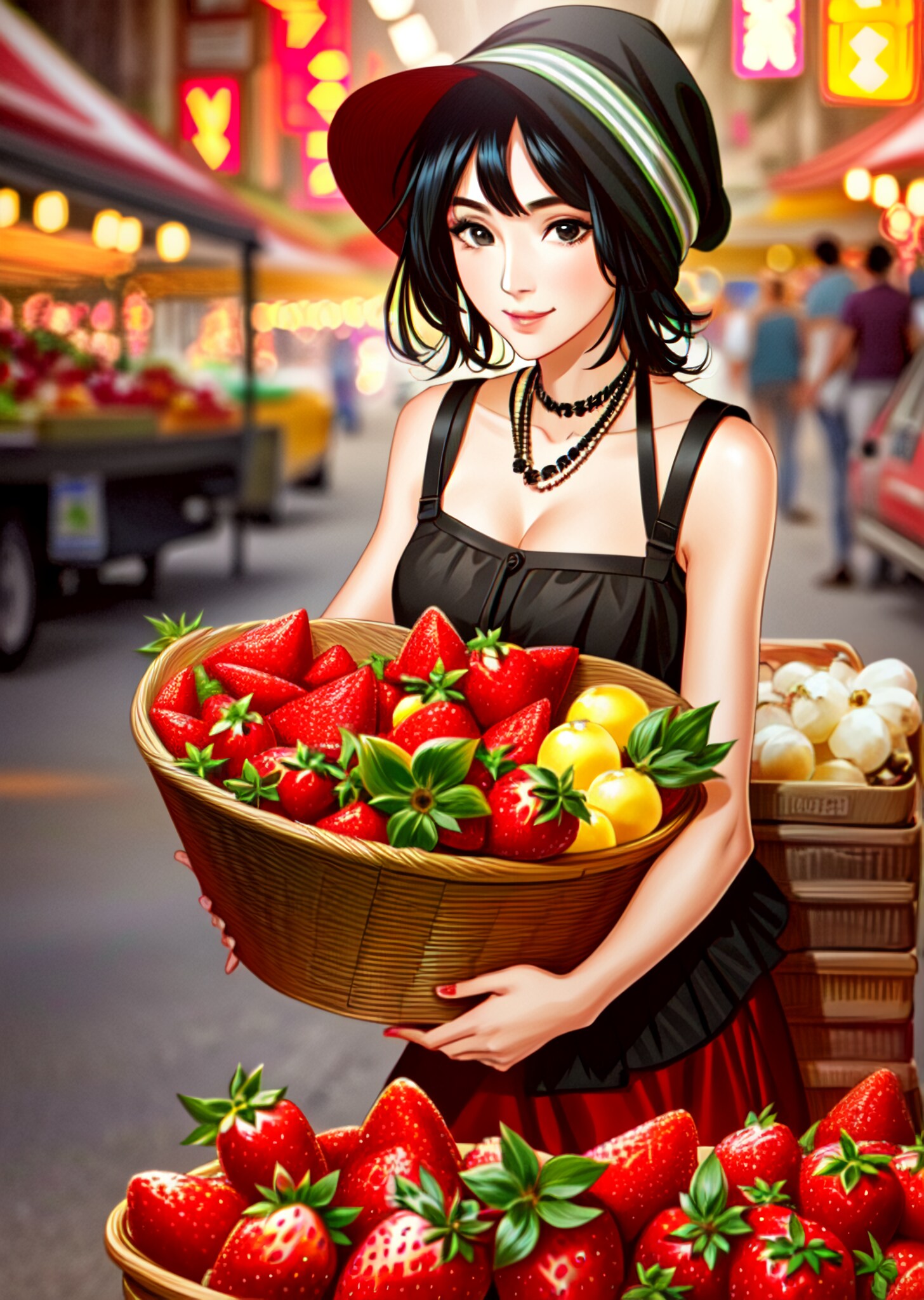 いちご売りのお姉さん