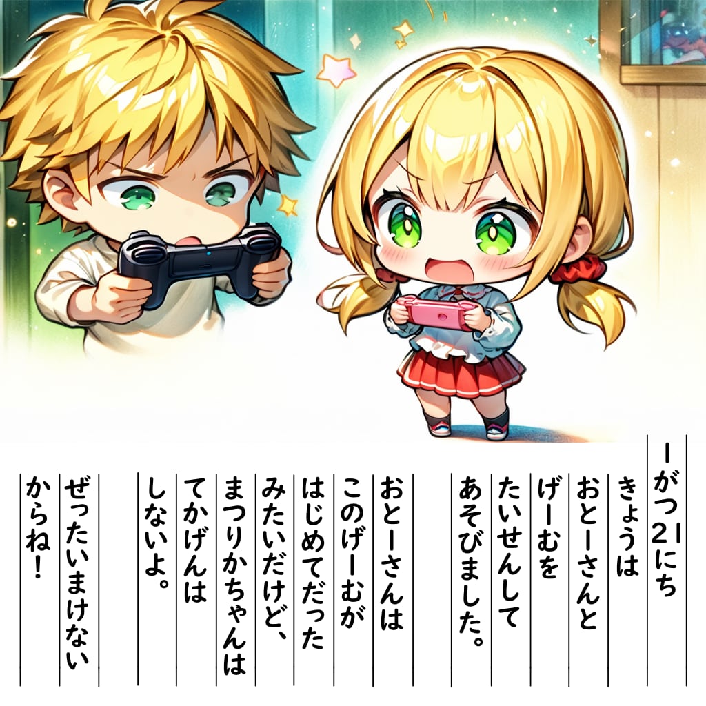 【絵日記】おとーさんとたいせんです