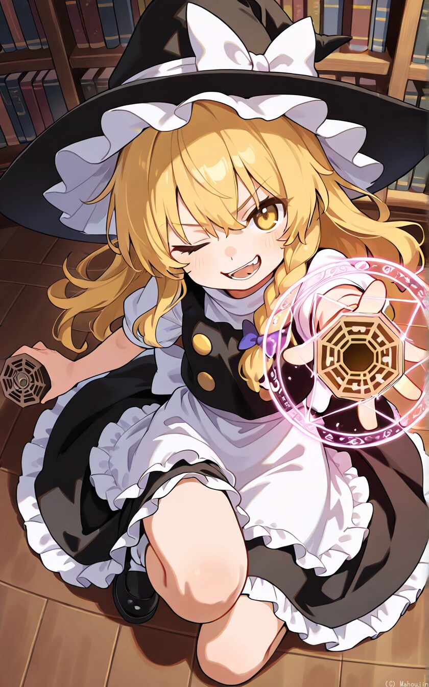 投稿者@諦め「魔法陣という事で魔法使いキャラかぁとなって、何となくアリスさんより魔理沙さんかなという感じです。ミニ八卦炉から魔法陣を展開させたかったのですが、あんまりうまくいきませんでしたねー」