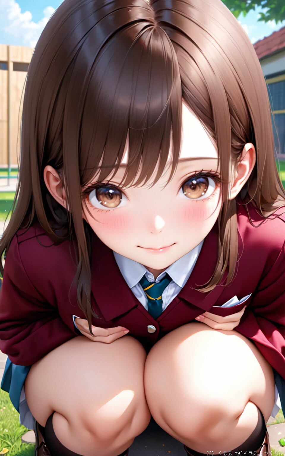 飽きもせず、制服しゃがパンチャレンジ。