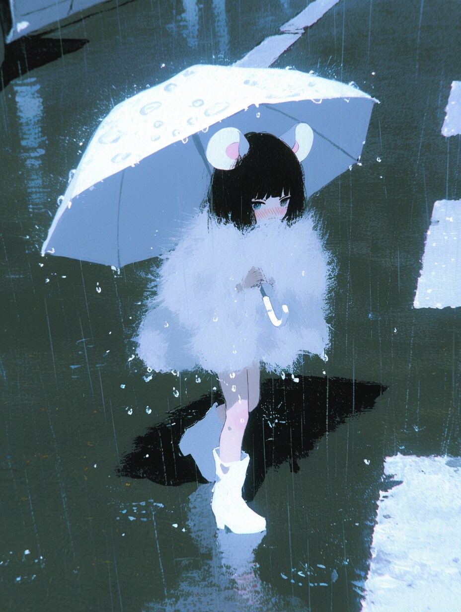 天気予報見てなくて土砂降りの雨に襲われ、濡れたままコンビニで傘買ってきたねず耳ちゃん…(長い)