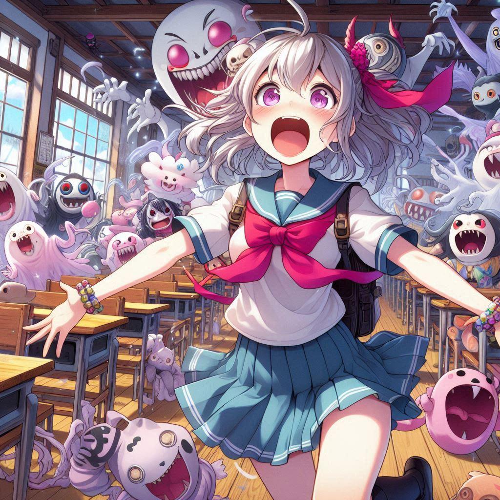 学校にかわいい女の子はみよちゃんだけなので、すべての男子お化けにねらわれちゃいます。