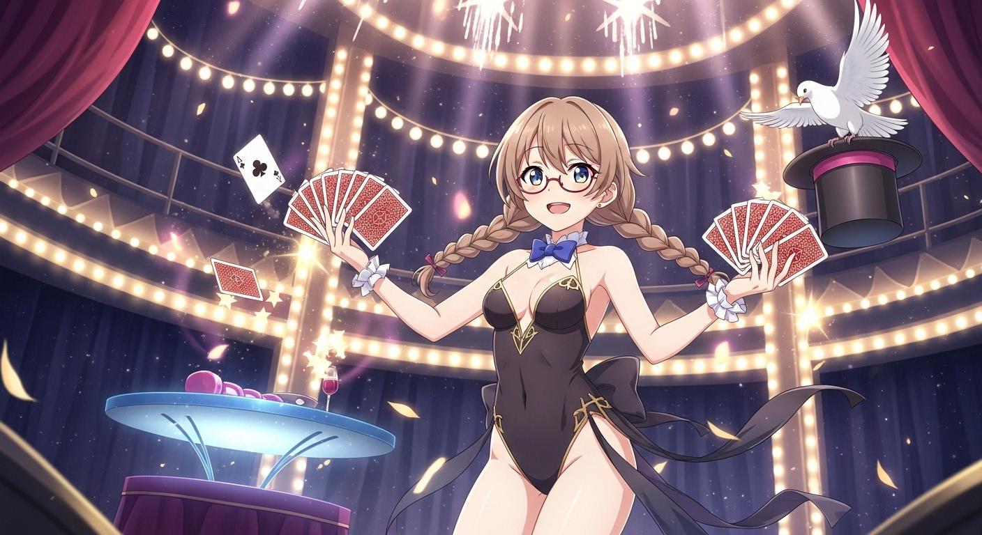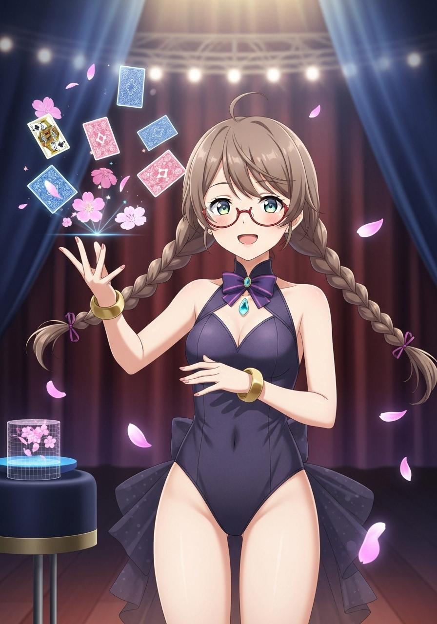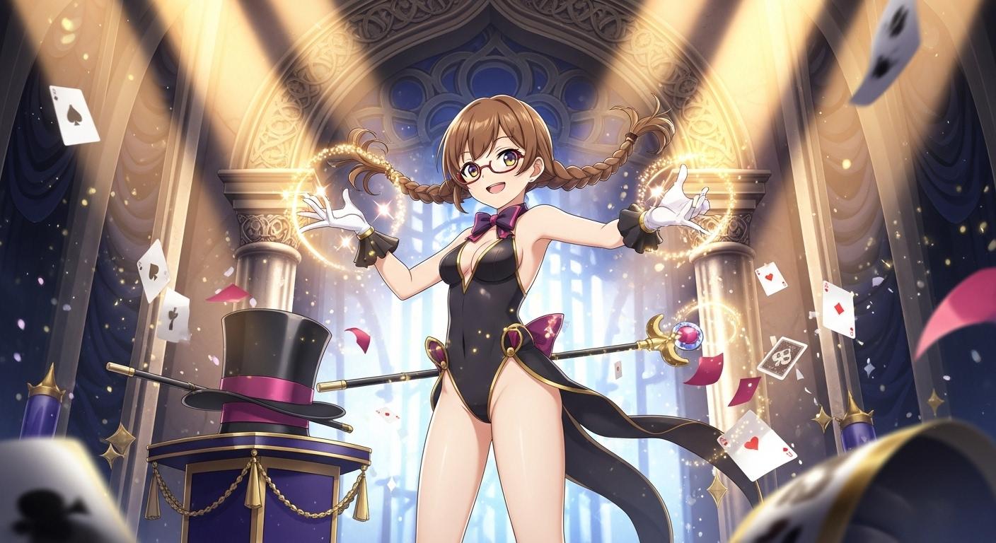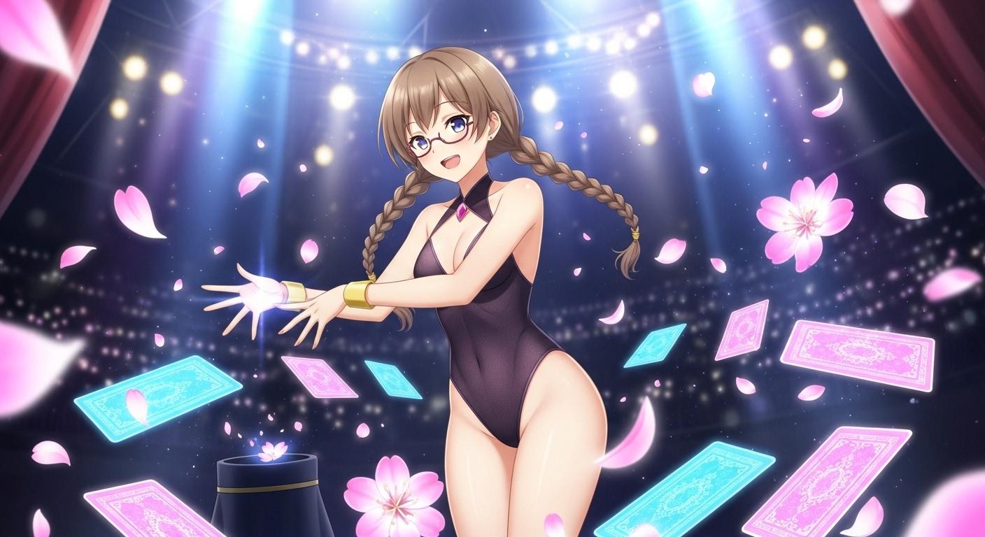 ImageFXで三つ編み眼鏡っ娘のハイレグ?美少女マジシャン♪・・最後の1枚はImageFX系で、何処まで肌だしハイレグが出来るのかの?チャレンジ品です
