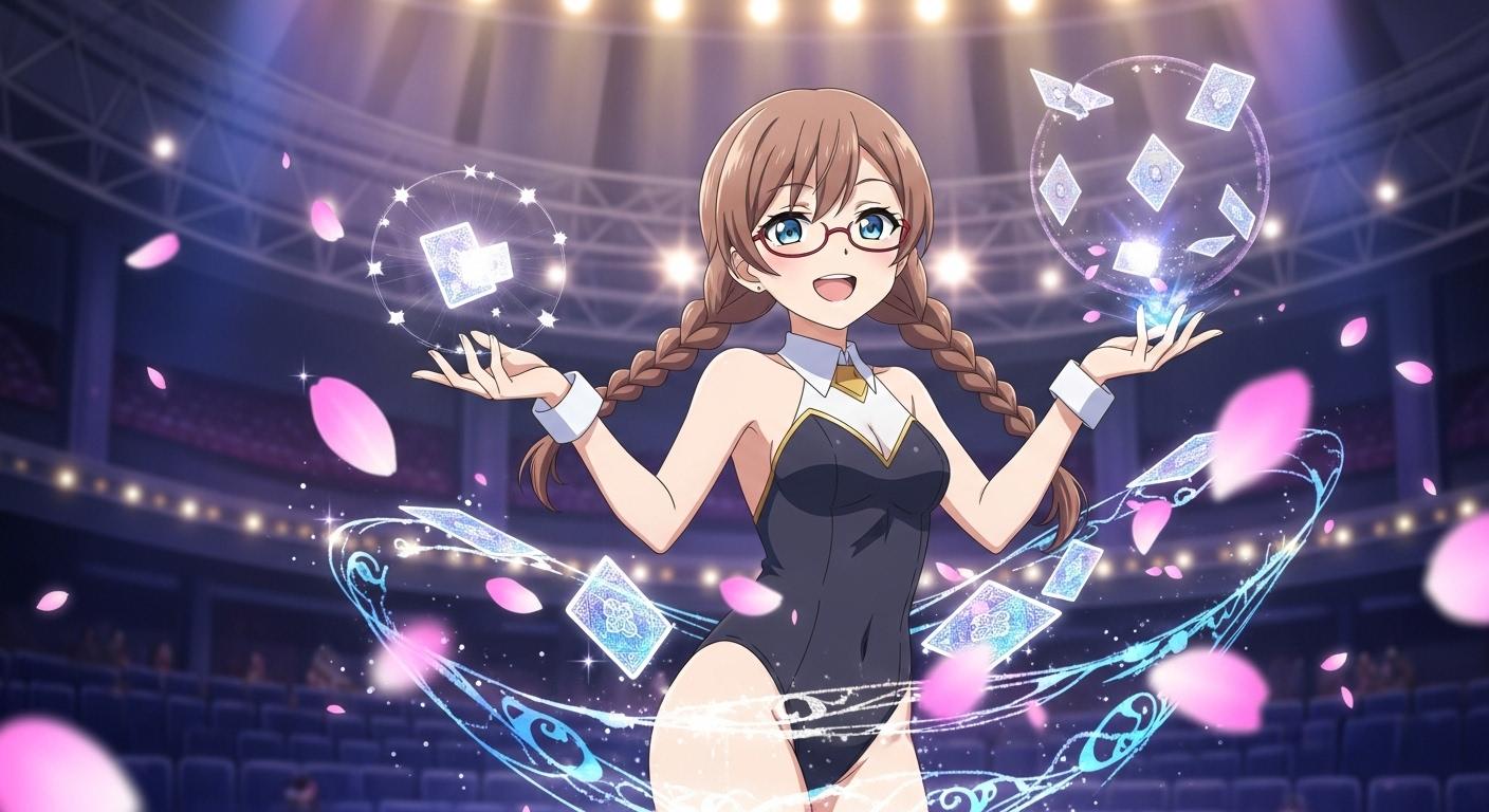 内容は、ImageFX(Whisk)で生成した三つ編み眼鏡っ娘のハイレグ?美少女マジシャンちゃんです♪(ハイレグ?って断言していいのか?微妙な角度ですが?💦ImageFX系なのでご容赦を・・💦)