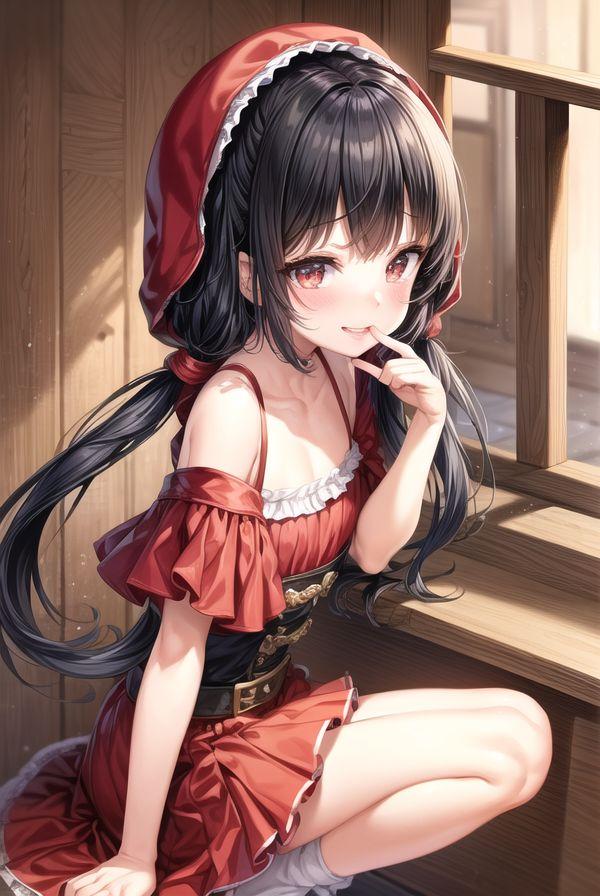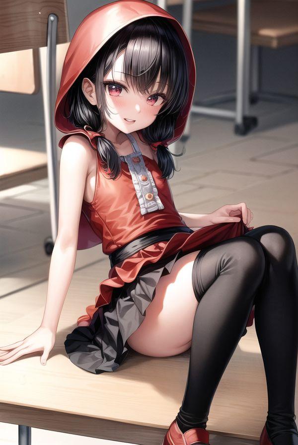 赤ずきんちゃんが学校に初登校したときの初々しい感じを表現しました