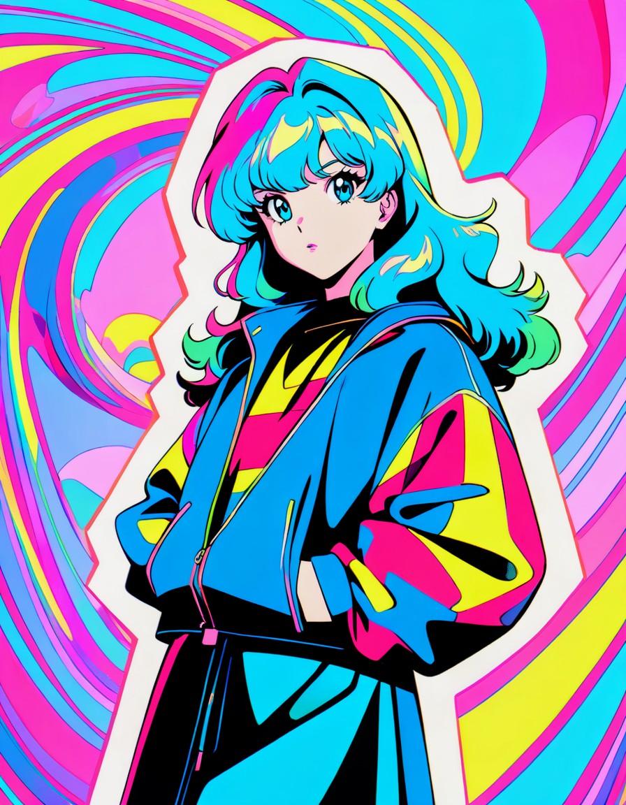 懐かしい感じがする、サイケな80sレトロポップなイラスト👍️