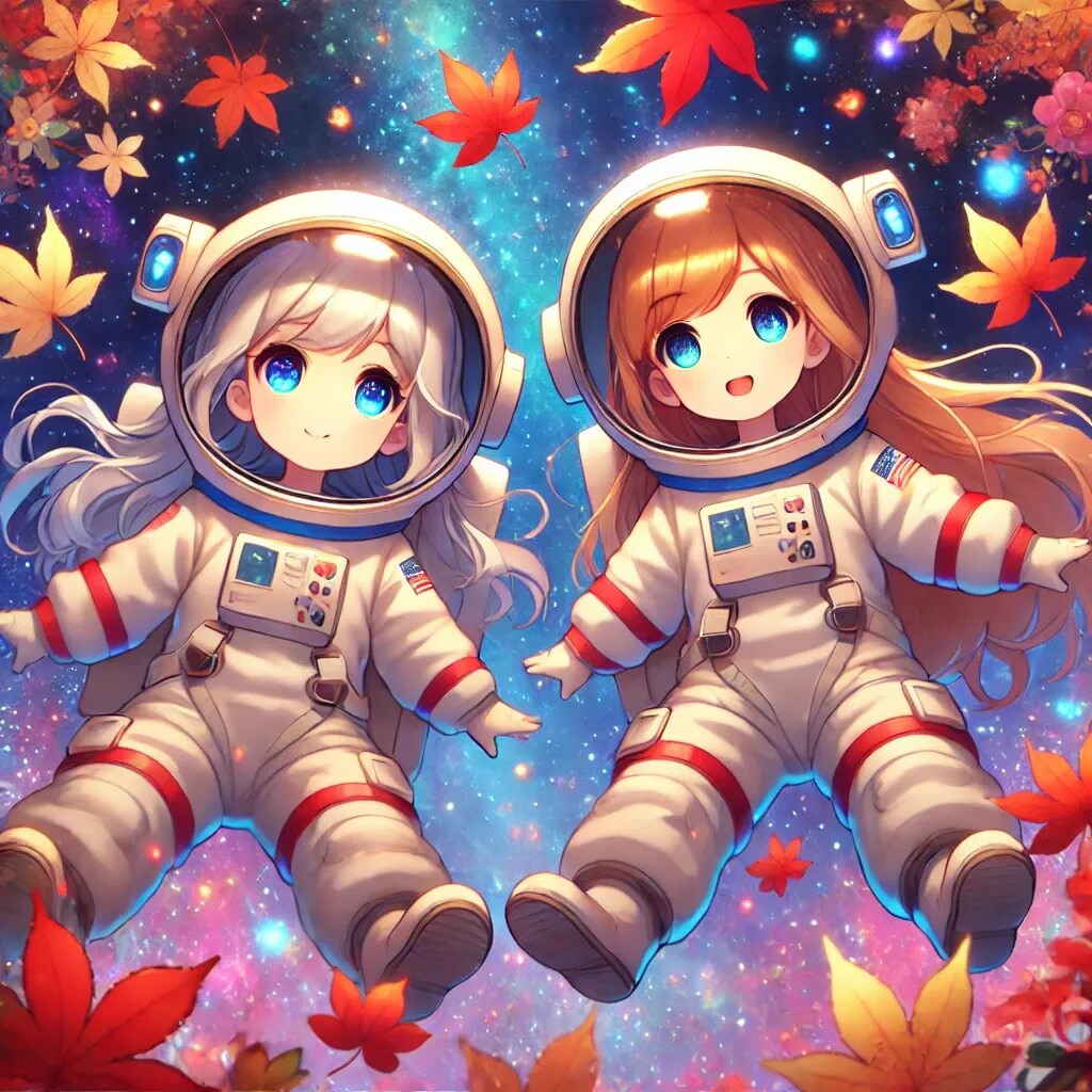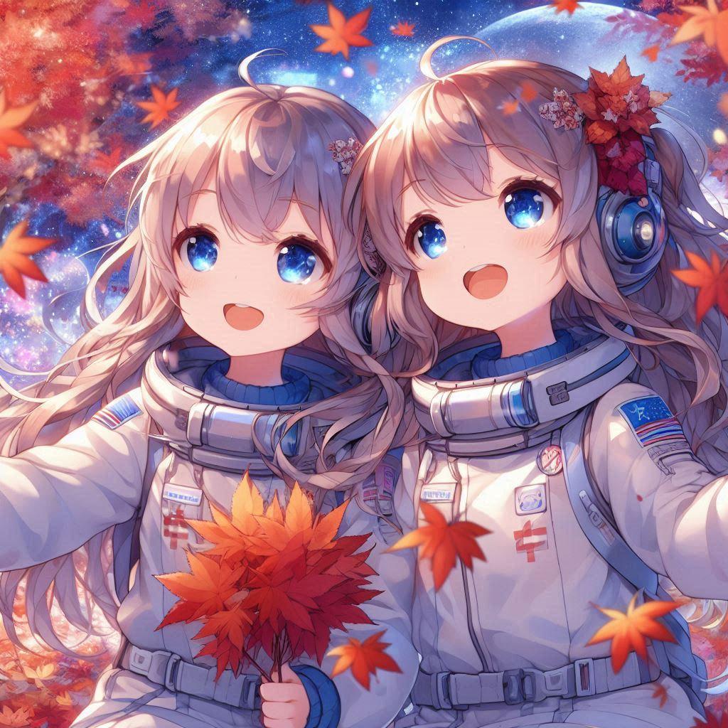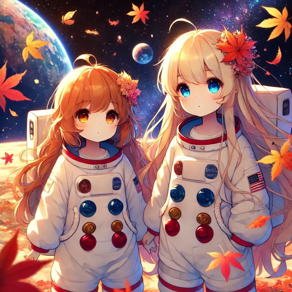 宇宙で紅葉を眺める小さな女の子