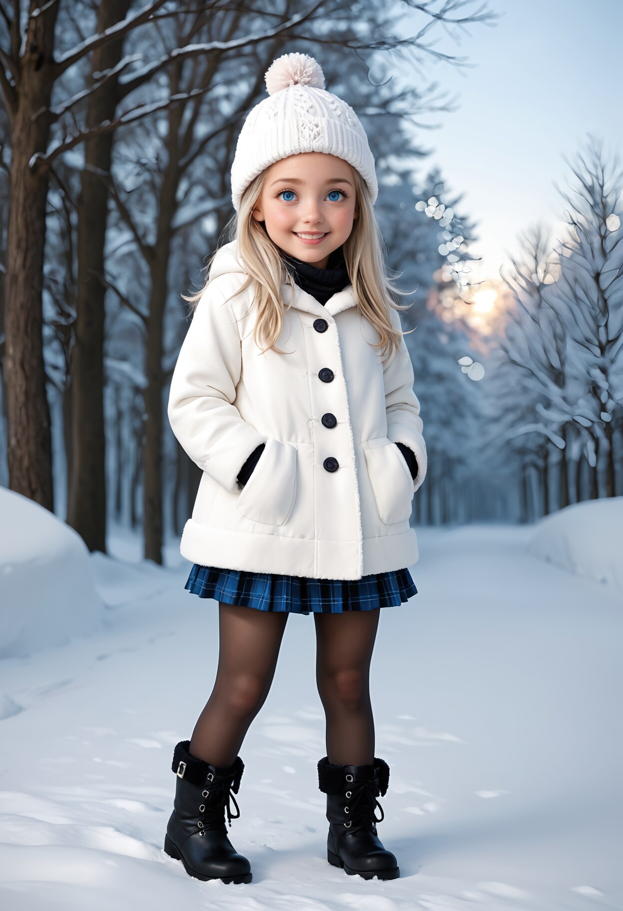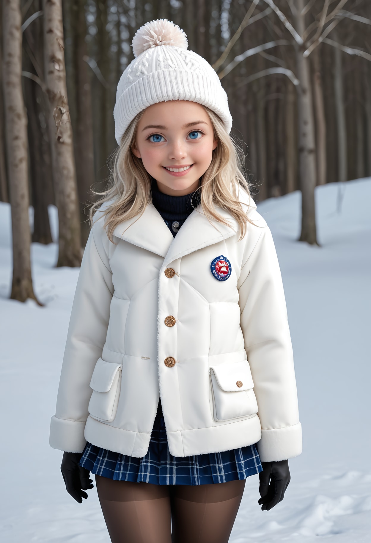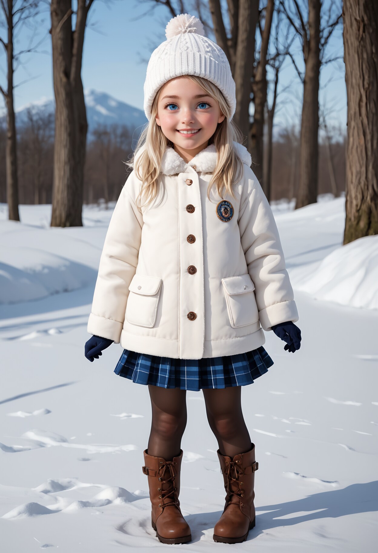たまには純真無垢な金髪少女(ょぅι゛ょ?😅)も描いてみたくなったので、チョット寒そうですがミニスカ+雪景色ということで😄