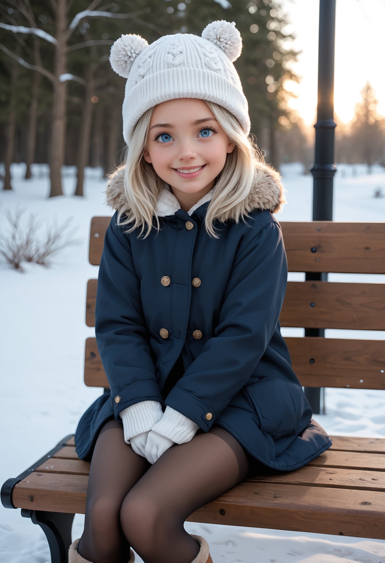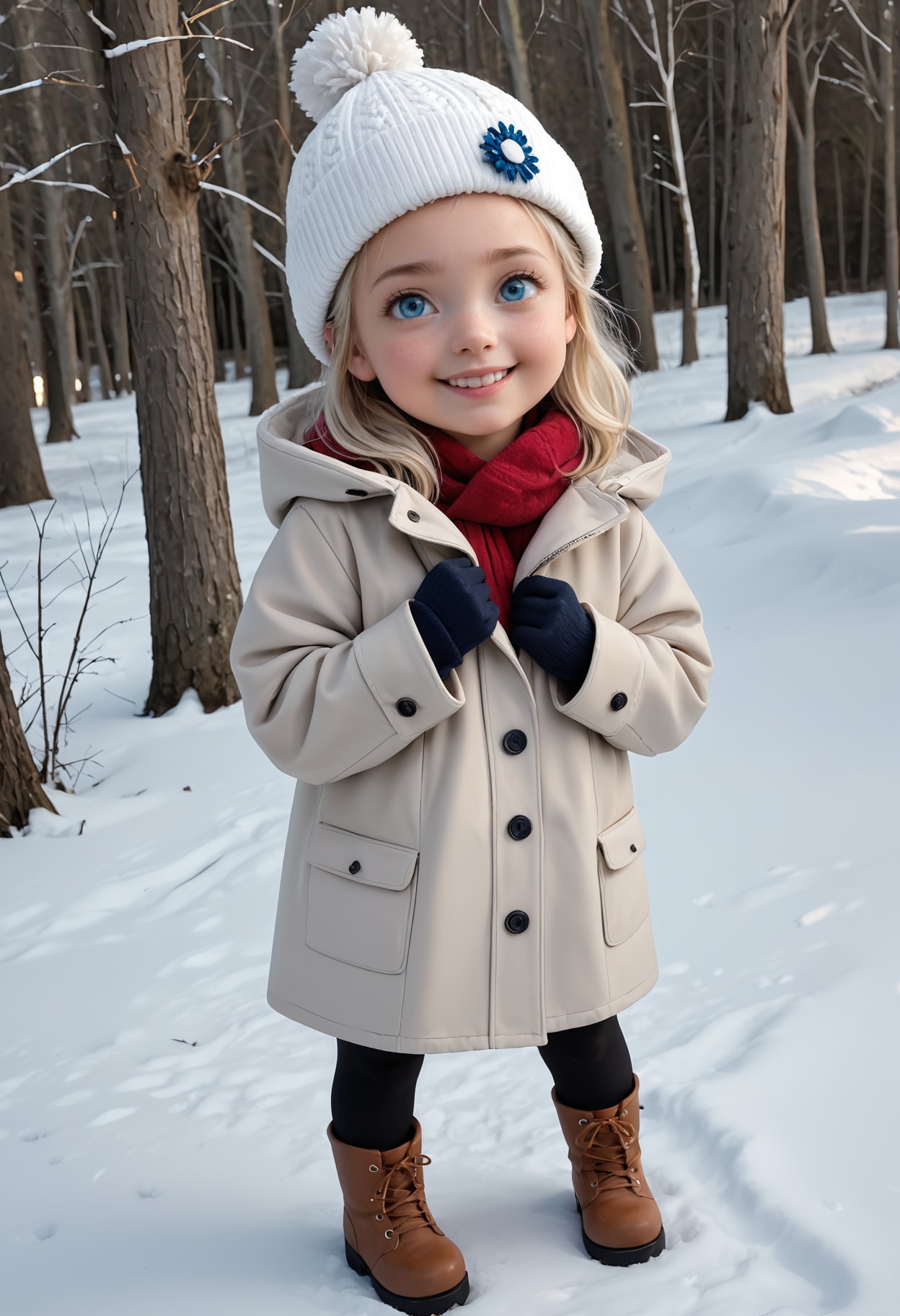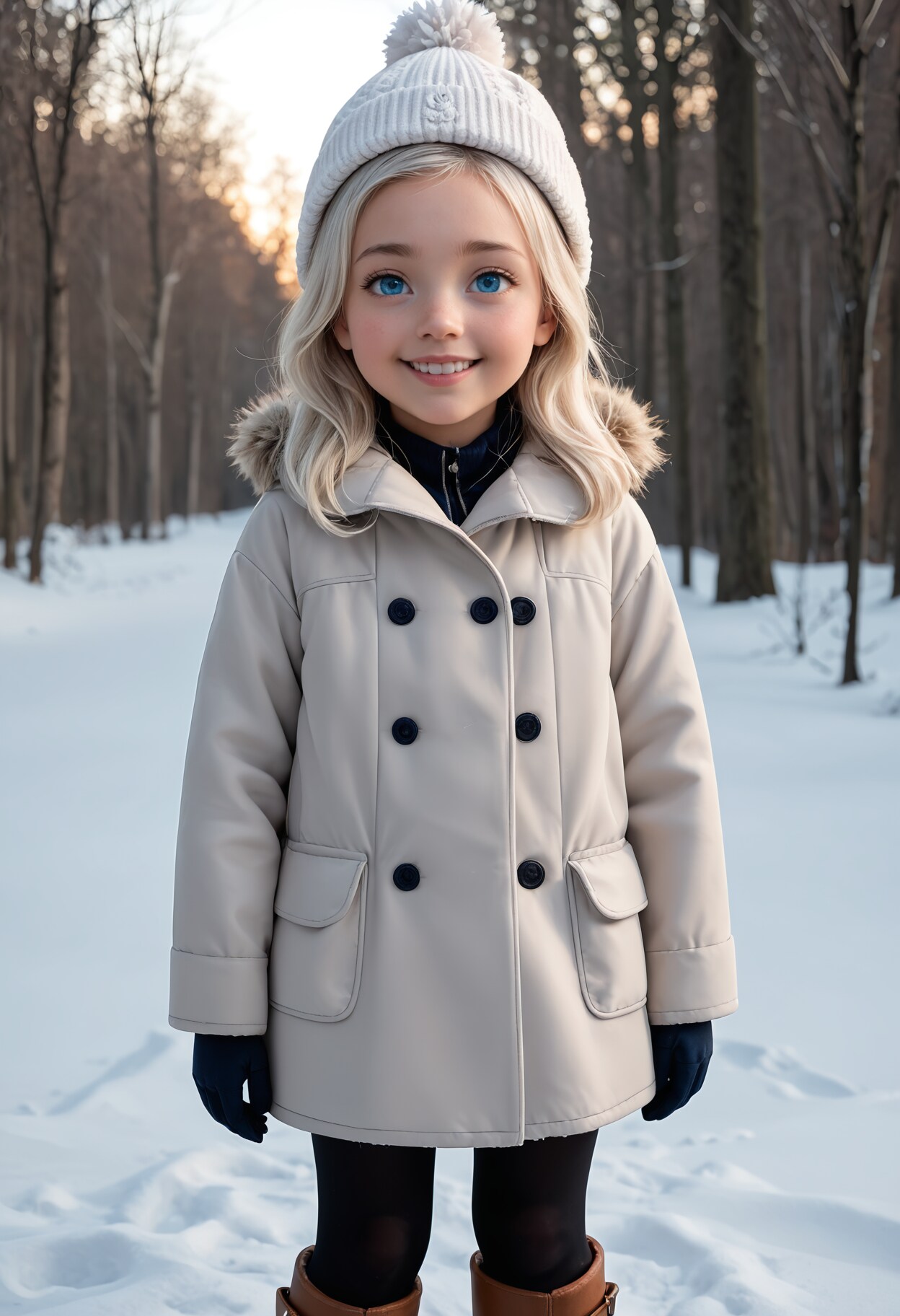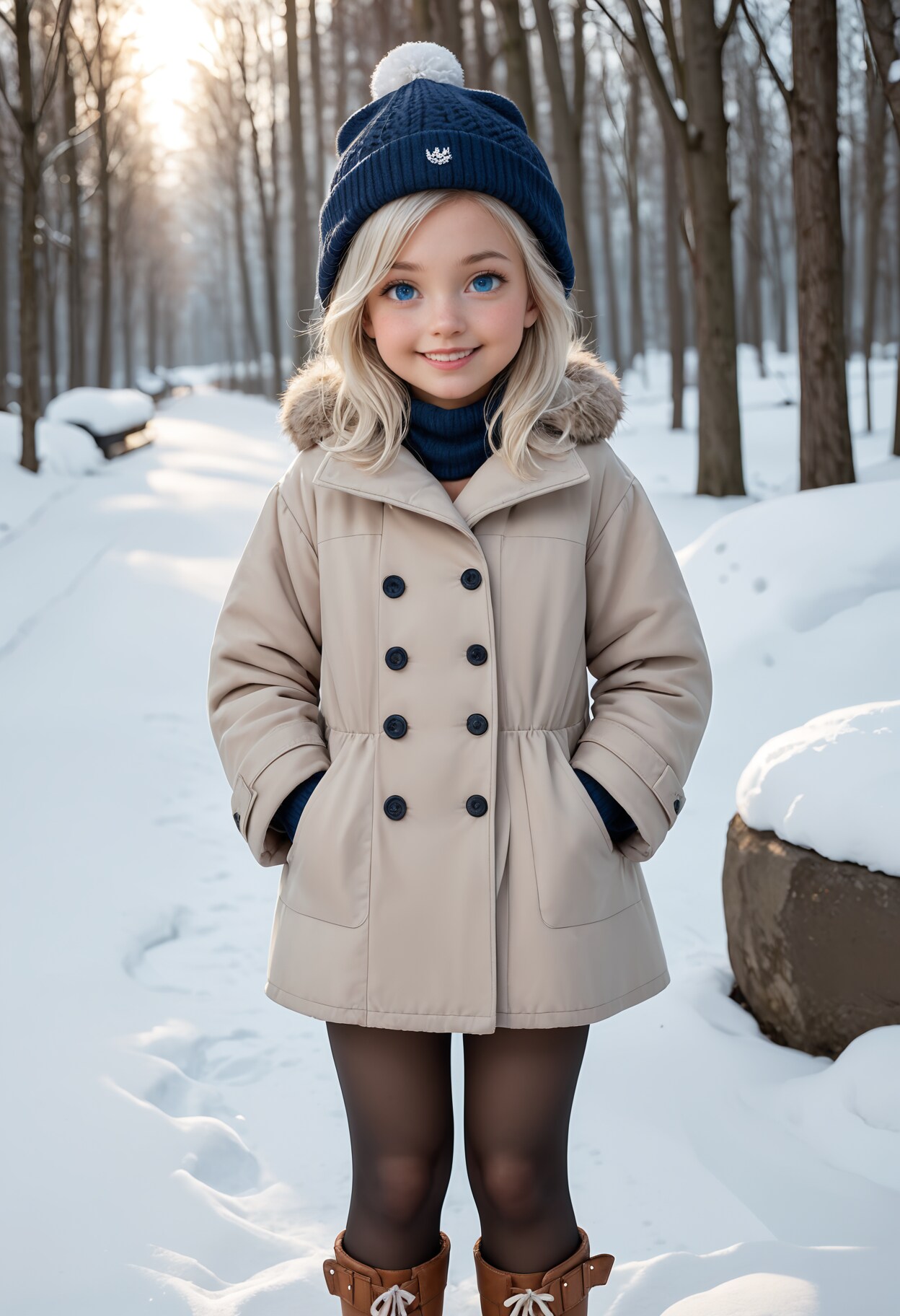 たまには純真無垢な金髪少女(ょぅι゛ょ?😅)も描いてみたくなったので、チョット寒そうですがミニスカ+雪景色ということで😄