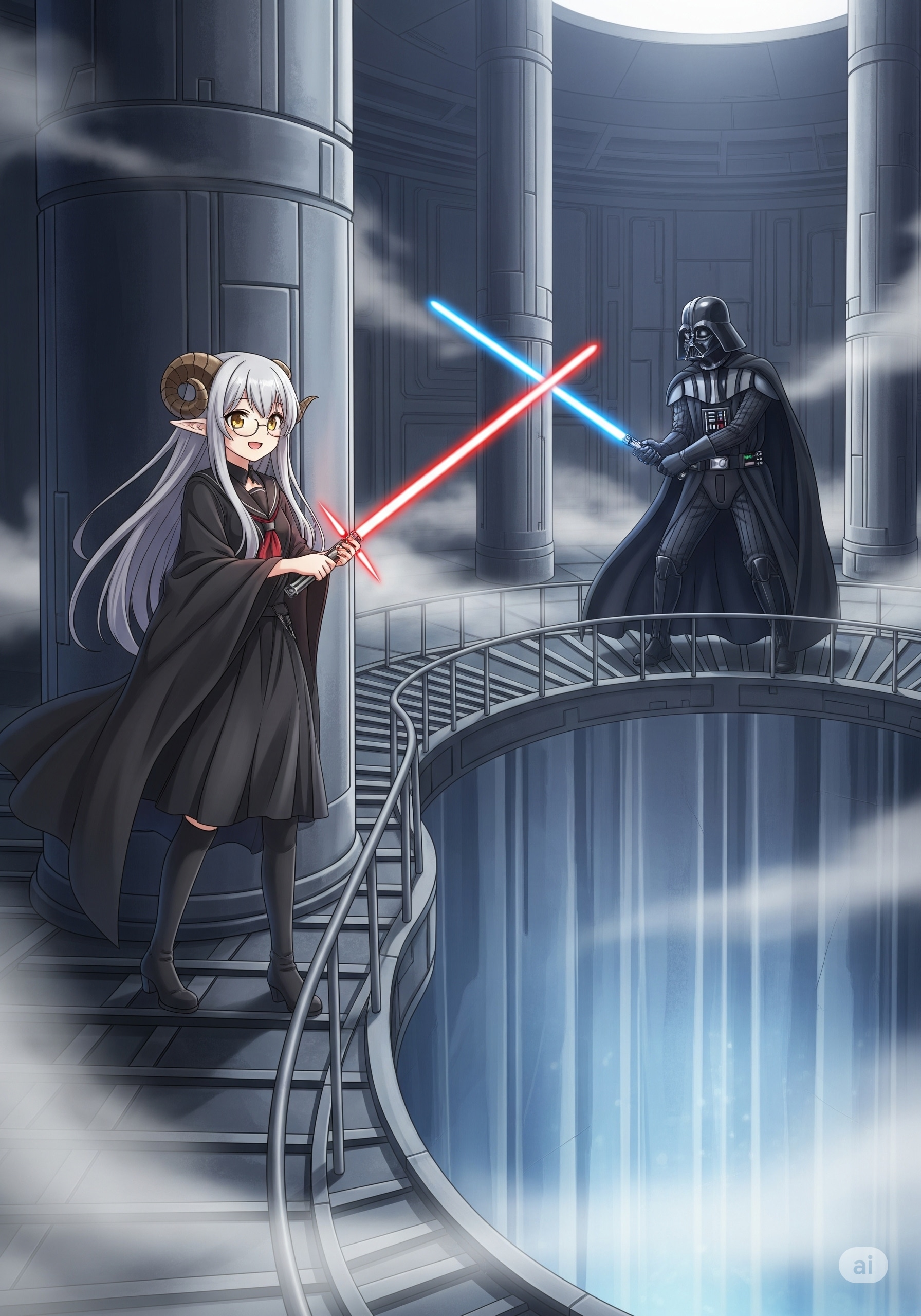 ⑨〜⑩:ベイダー卿直々にチャンバラごっこに付き合ってもらい、例の台詞まで言ってくれたのにイマイチわかってない死神さん… 時代劇には詳しいのに、スター・ウォーズには詳しくないようだ…