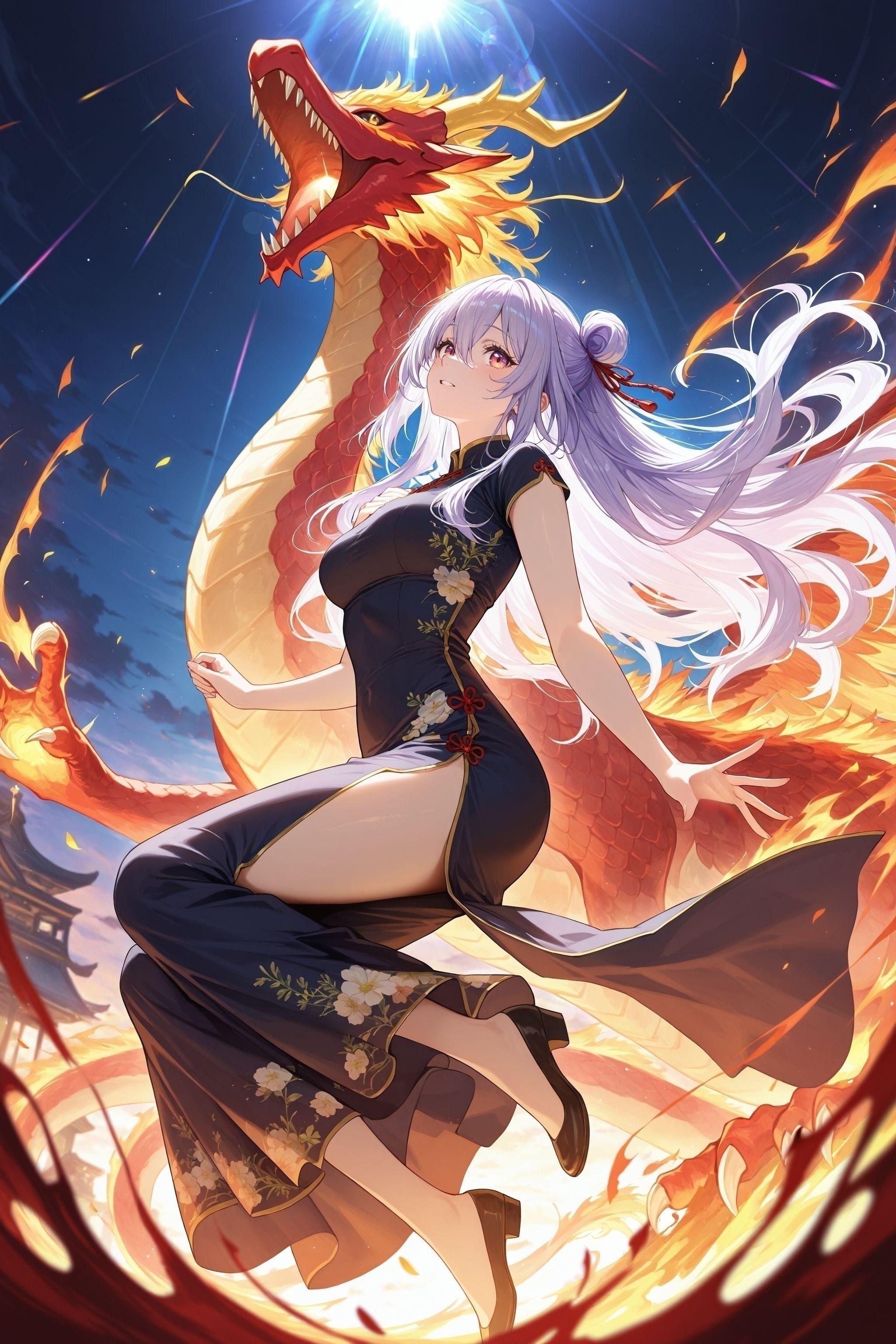 中華風に、綺麗に、光と背景を神秘的に、より詳細に、