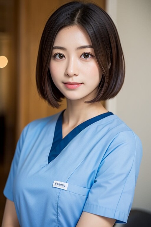 重要なのがプロンプトの (((white color uniform)))、自分の中で看護師さんの服装(ナース服)は白いイメージが強いのですが、このプロンプトないと手術着の青っぽい色になってしまうのと、ネガティブプロンプトの (Stethoscope) 聴診器、これないと女医さんっぽく見えます。普段、聴診器ぶら下げてる看護師さん見ないから(笑