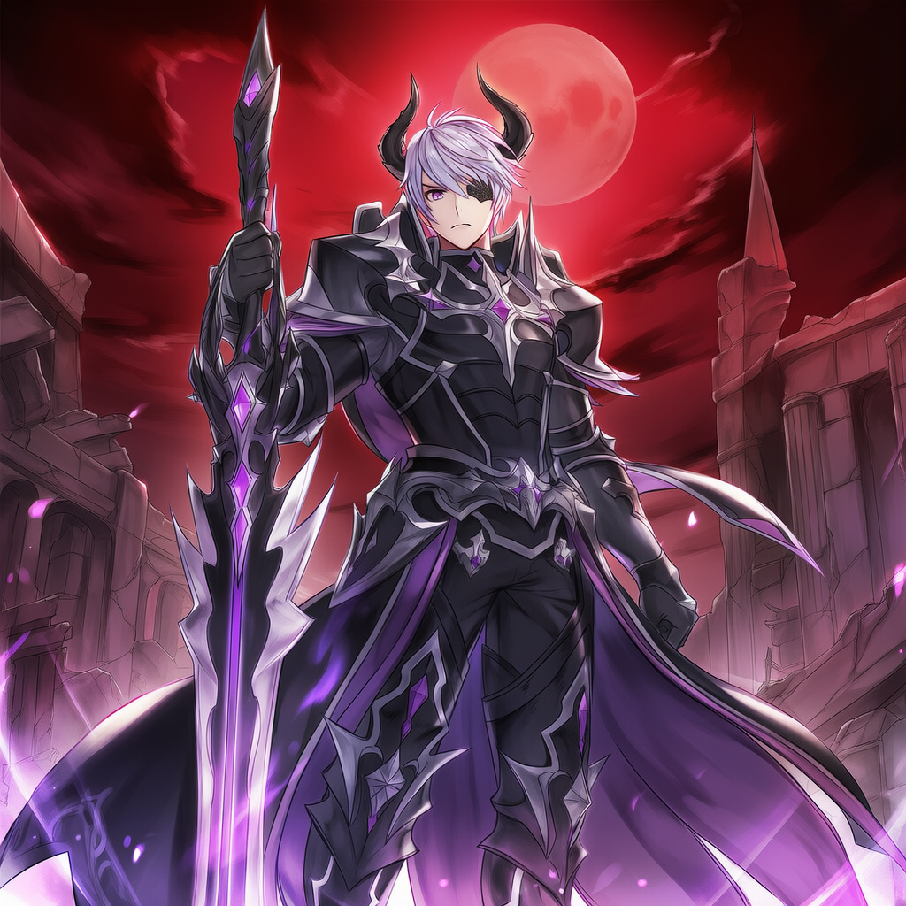 二柱の女神の奸計により魔王に堕ちてしまった英雄。「滅亡こそ救済」と唱え『堕剣エア』とともに暴威を振るう。