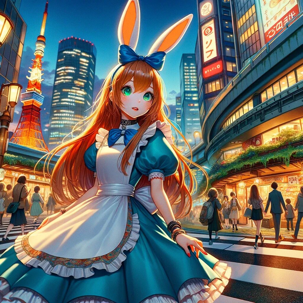 アリスは見たことない建物や乗り物に目を奪われました。