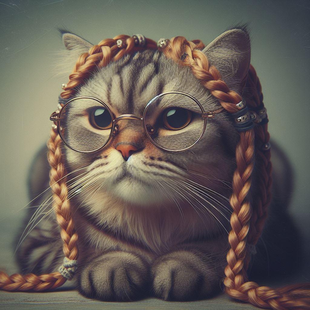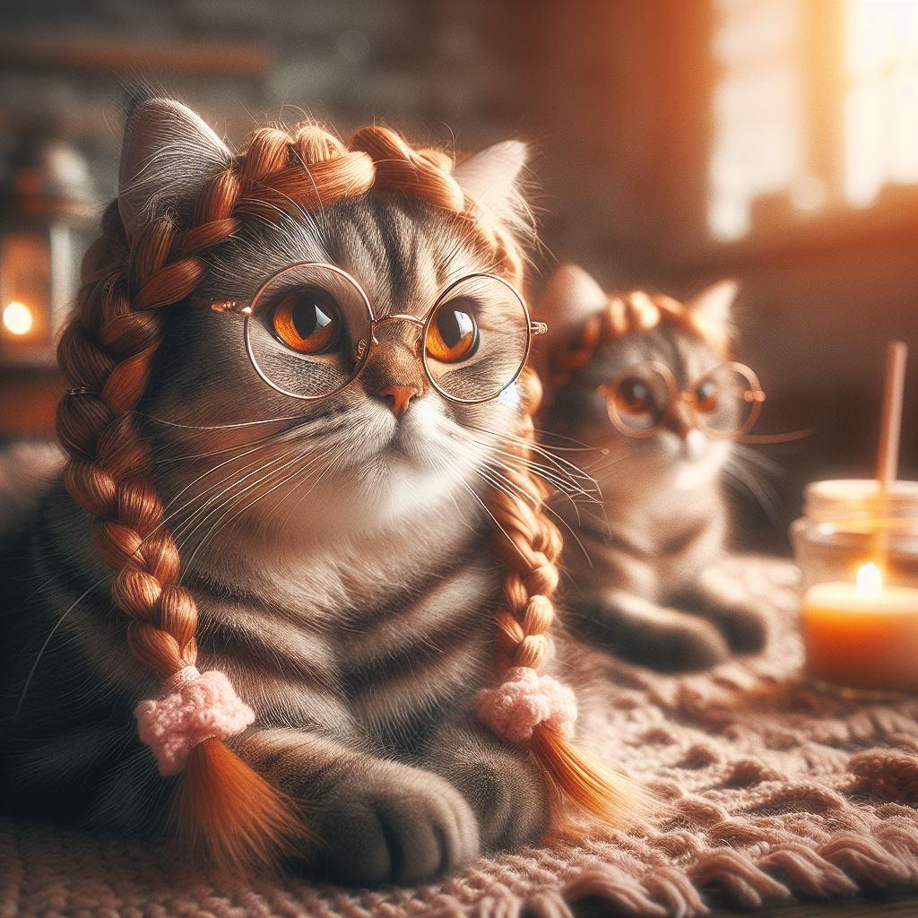 5/24追記:「眼鏡三つ編み猫」が2024年5月23日のAIフォトデイリーランキング1位に入りました!