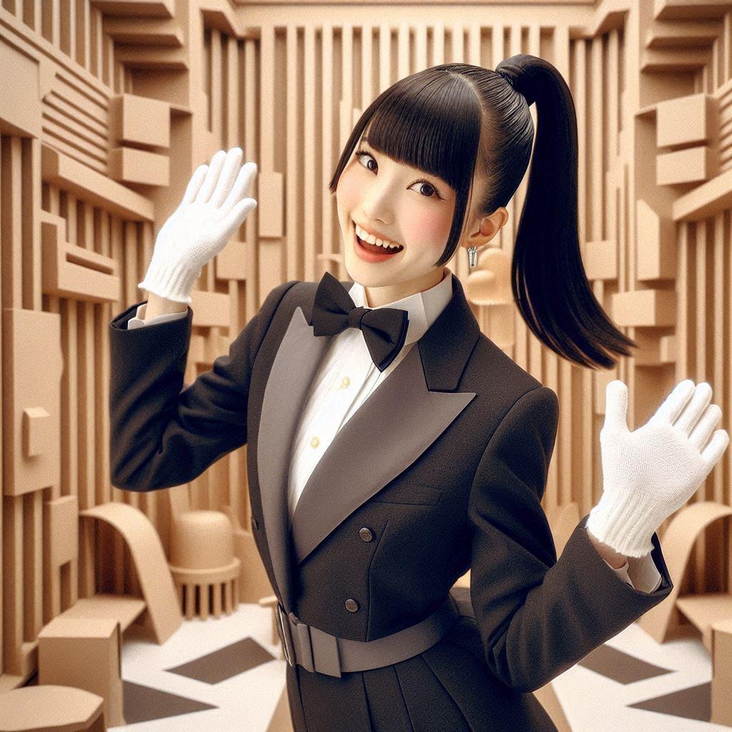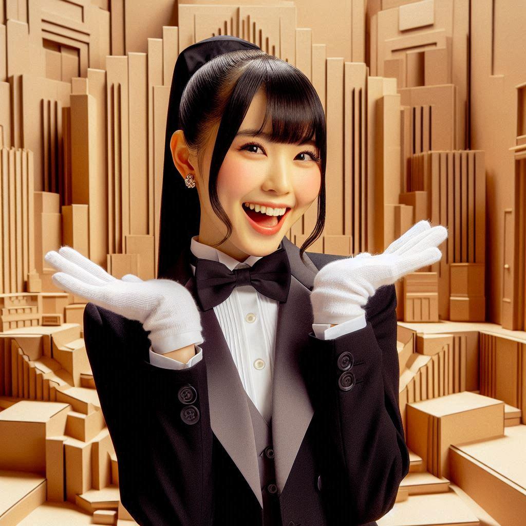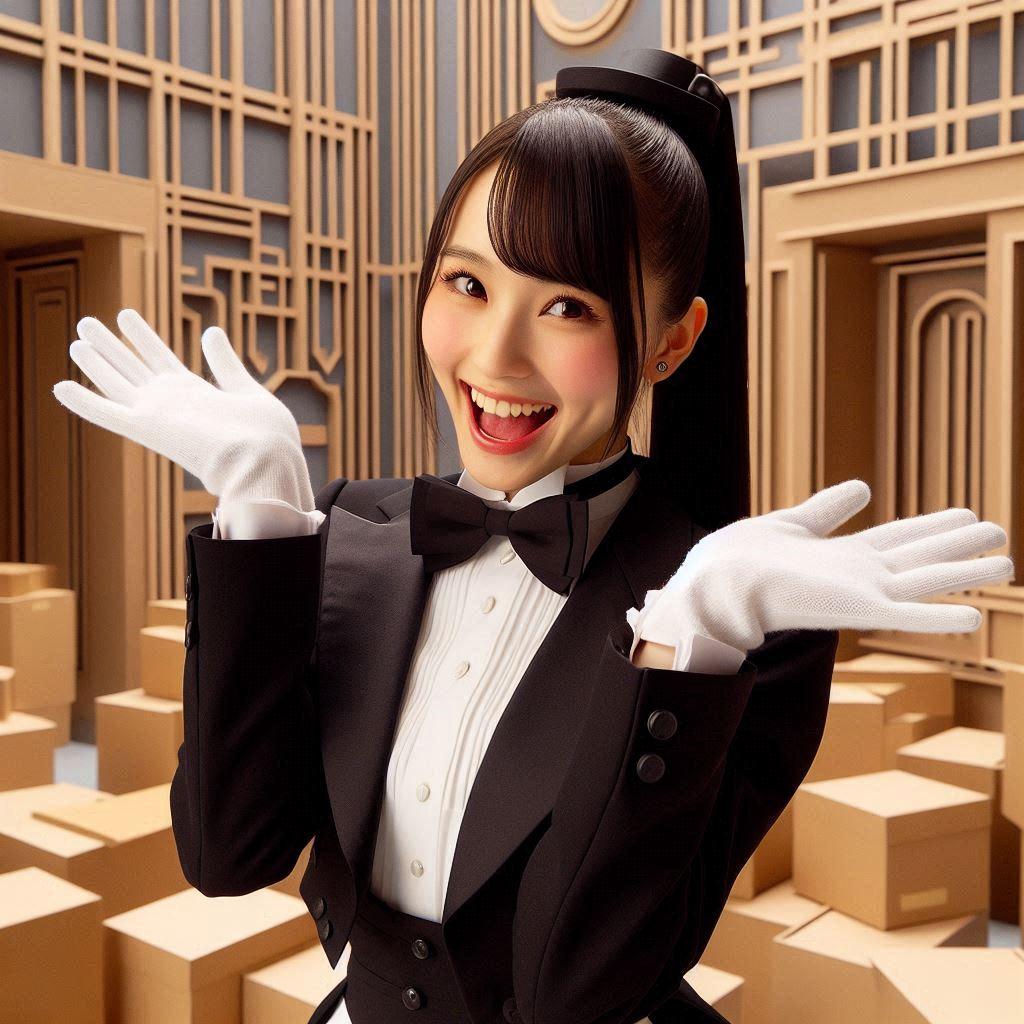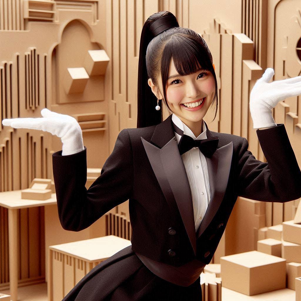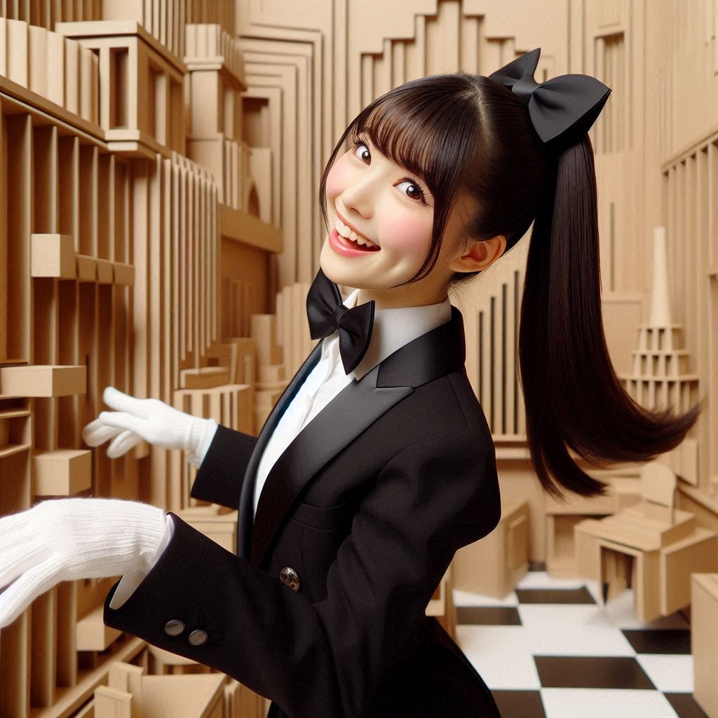 段ボール製のジオラマオフィス内で遊ぶ執事ちゃん