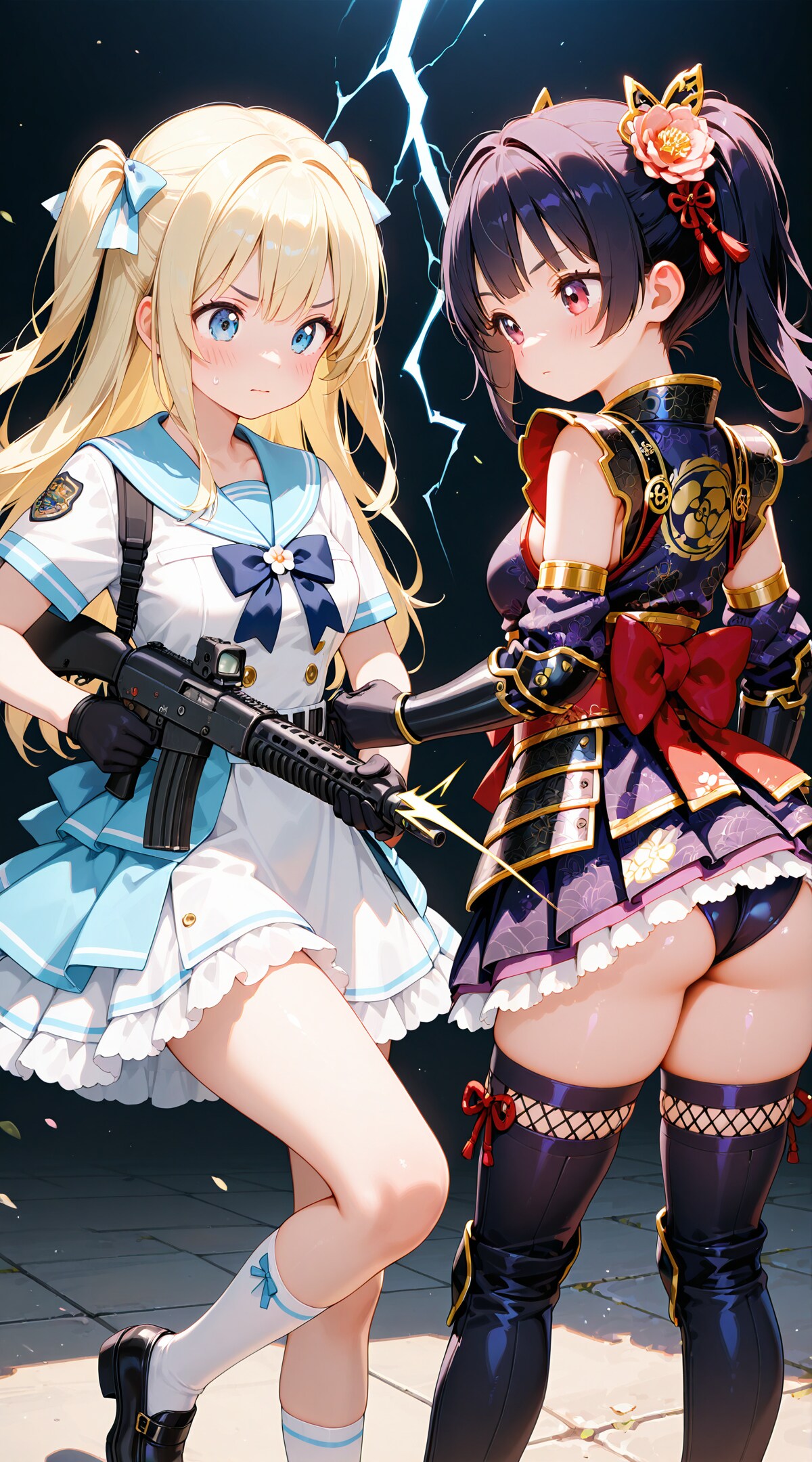 縦長画像に2人いて狭い範囲に押し込められて武器を持ってなかったり、