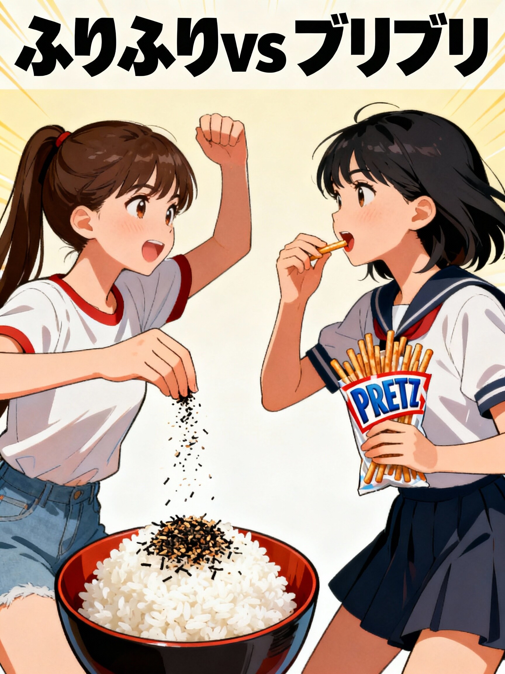 ふりかけVSPRETZ…指先からふりかけ(のりたまかな?)を出すんじゃありませんよ(笑)