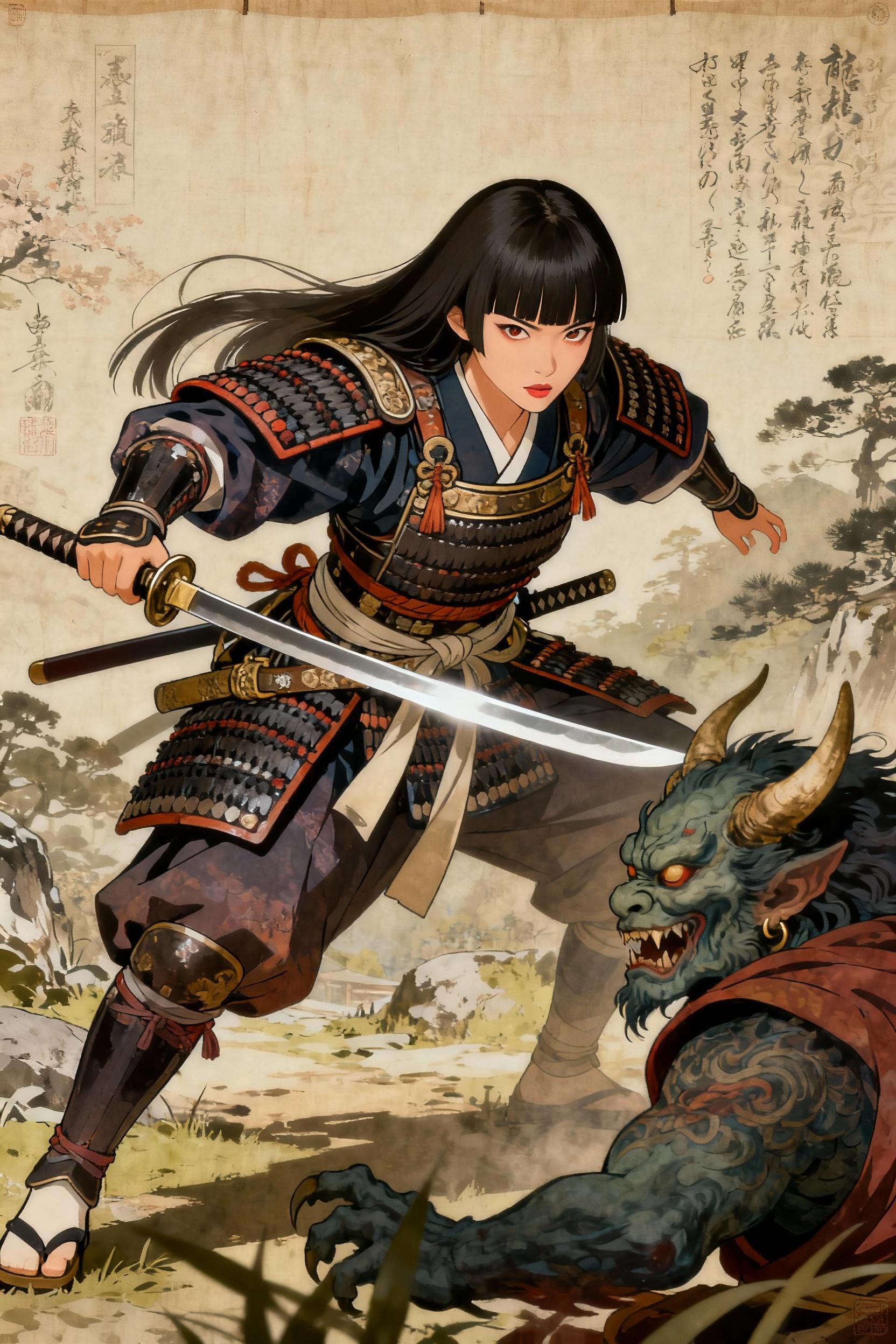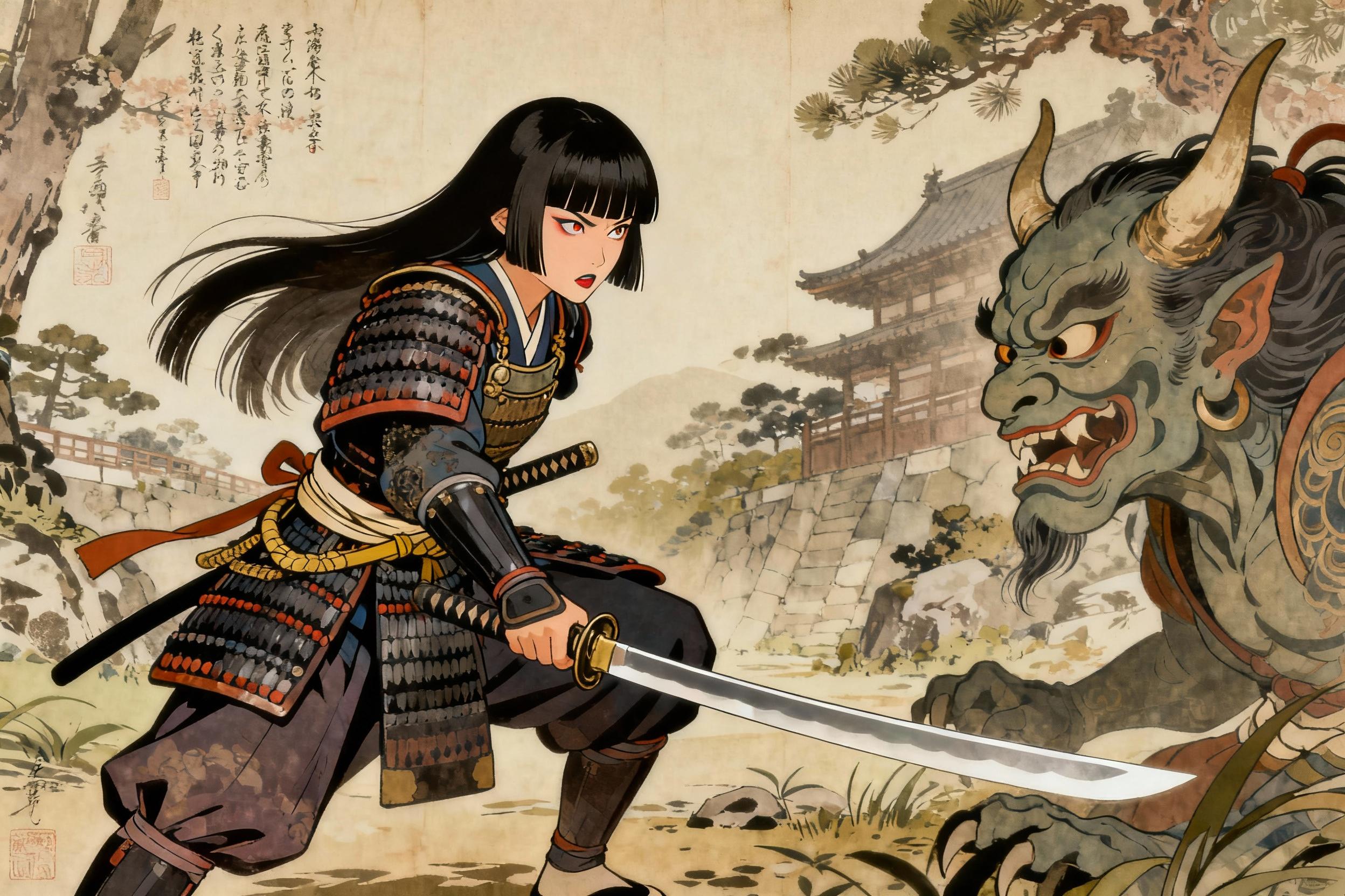 女侍鬼退治之図