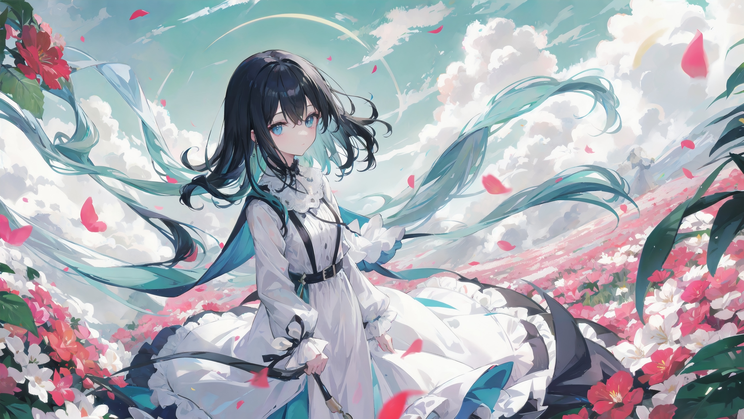 お花畑の中の少女