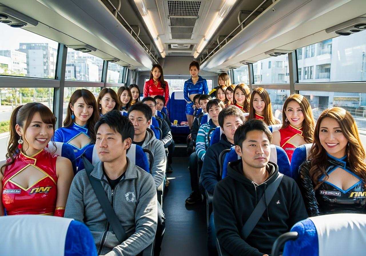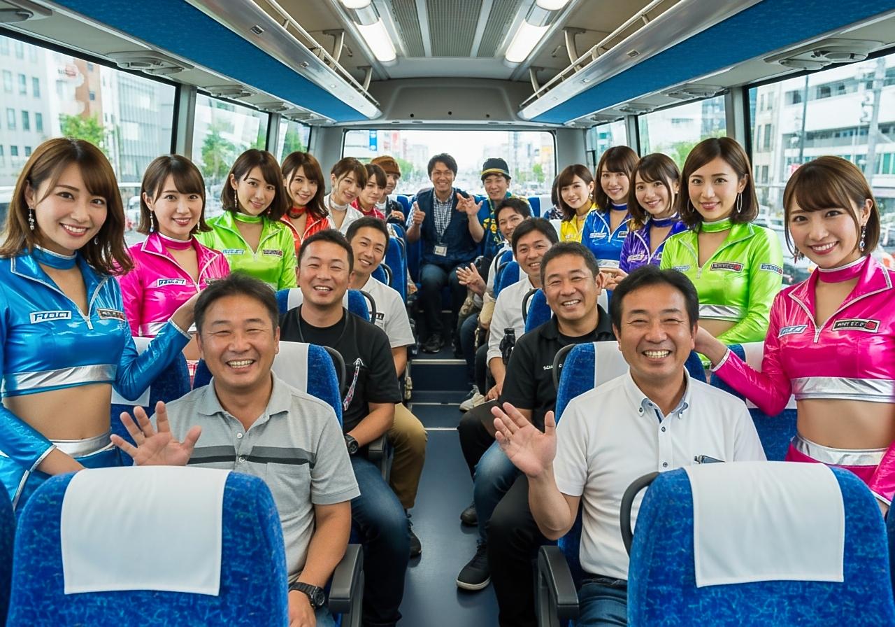 憧れのRQとのバスツアーで緊張気味の男性陣でしたが、