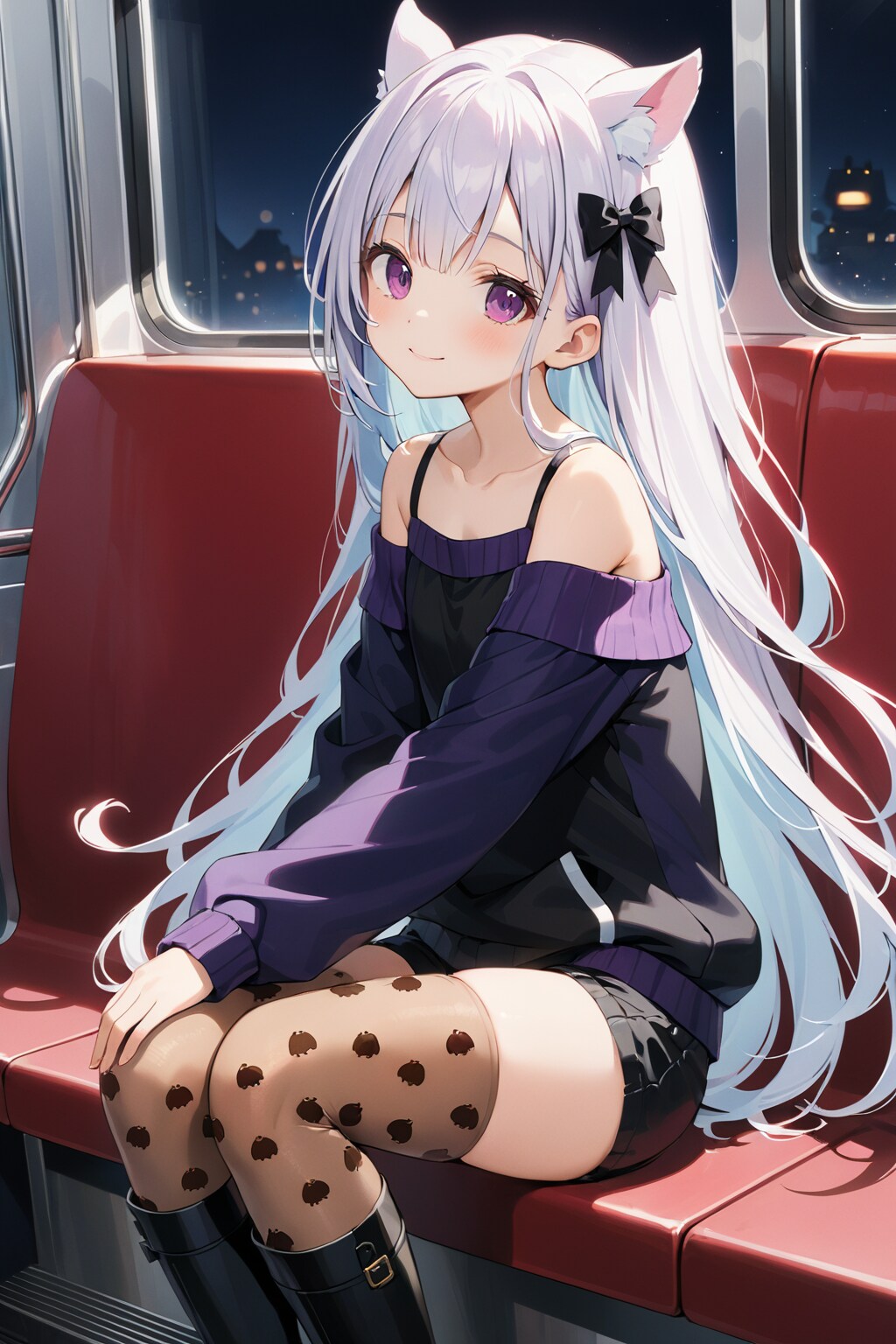 銀髪ニーソ(夜の電車!夜のって付くとワクワクする!!)_20241118