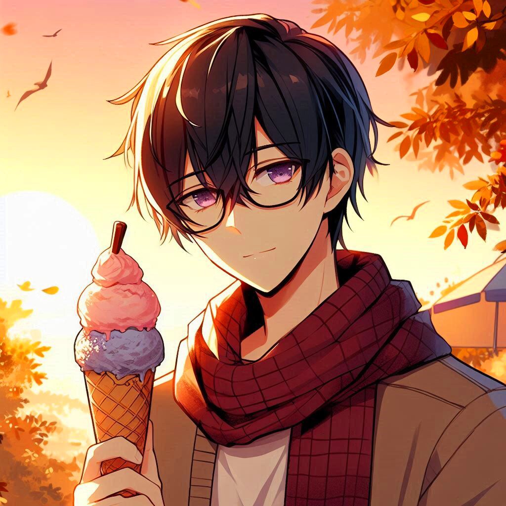 ではアイスクリームと、黒髪短髪男性をご覧ください★