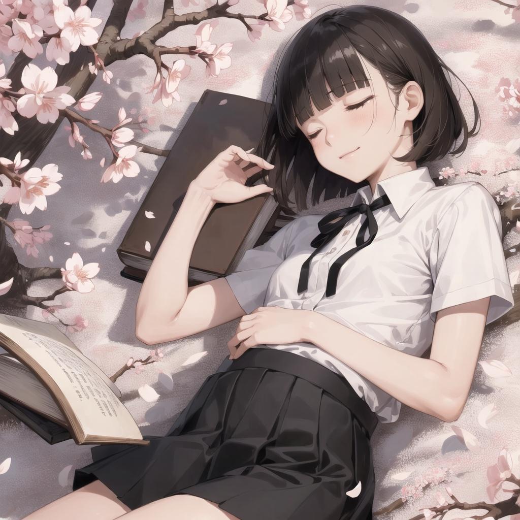 桜の木の下でスヤスヤ