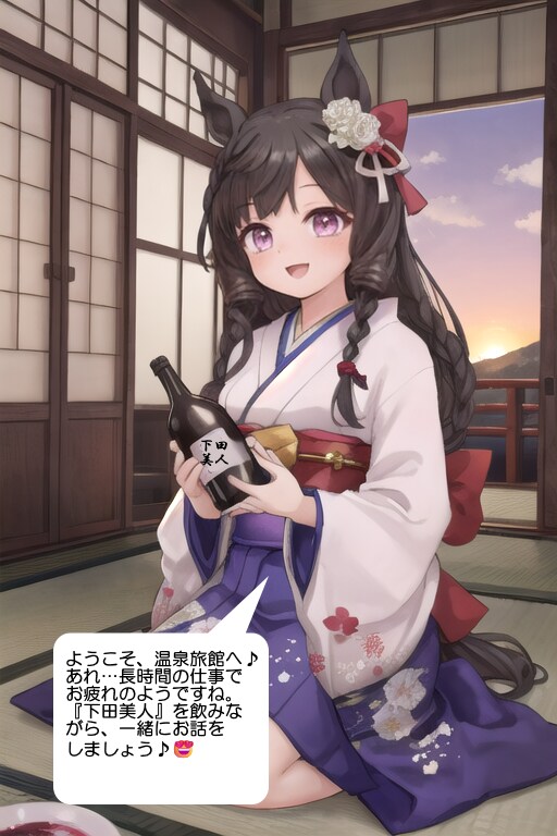 ダイイチルビー:ようこそ、温泉旅館へ♪あれ…長時間の仕事でお疲れのようですね。『下田美人』を飲みながら、一緒にお話をしましょう♪😍