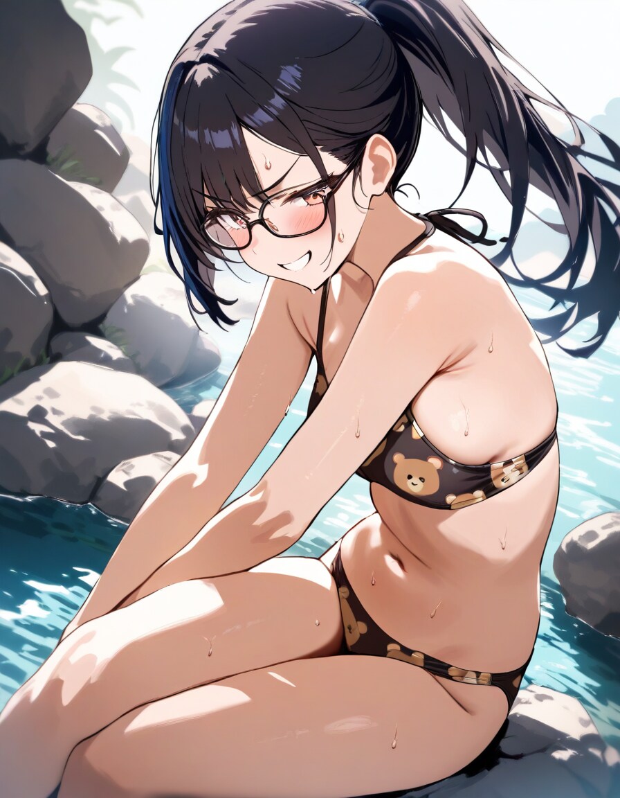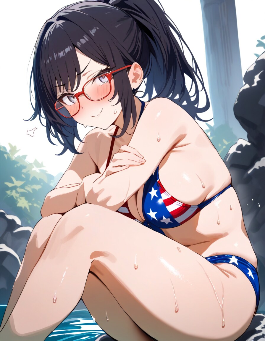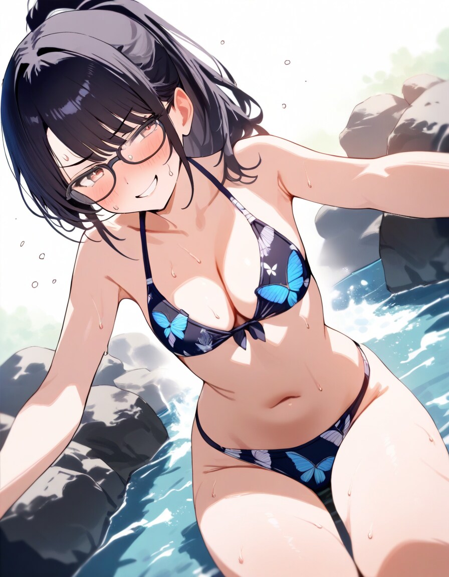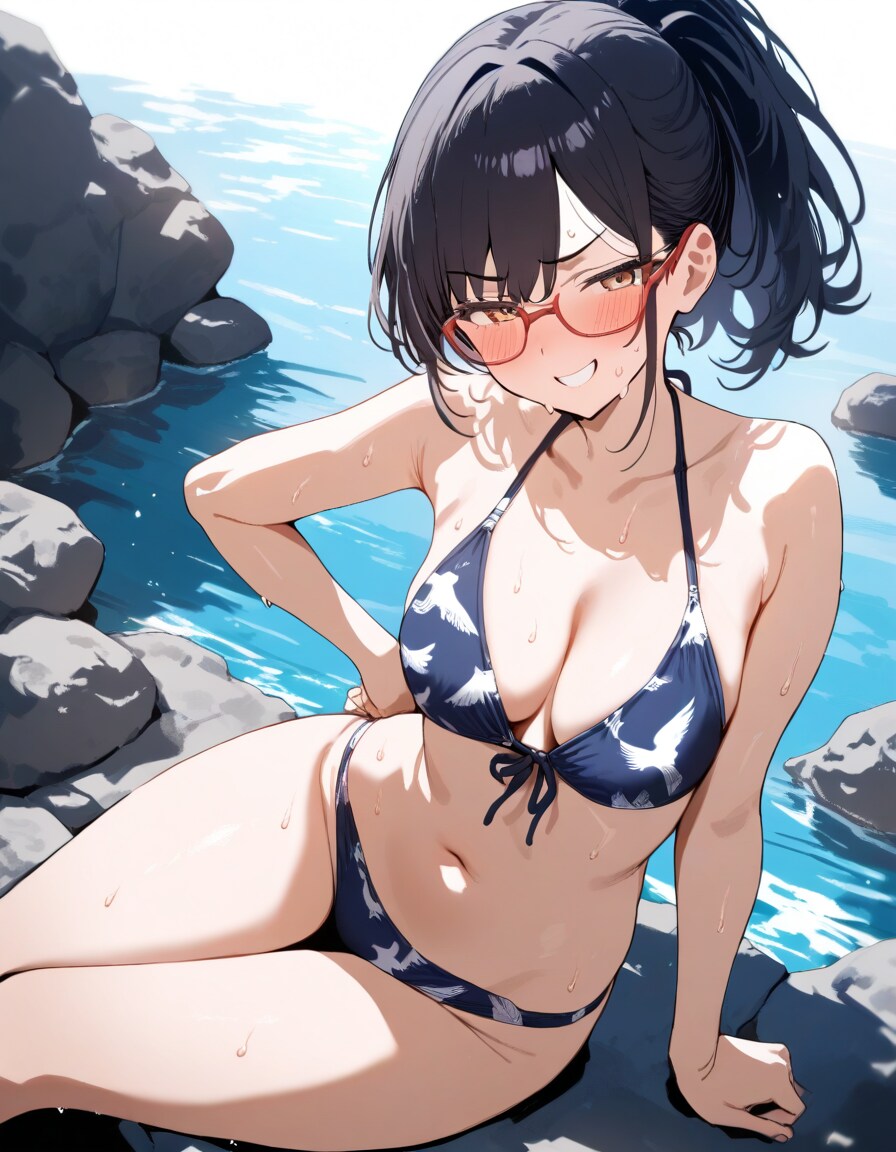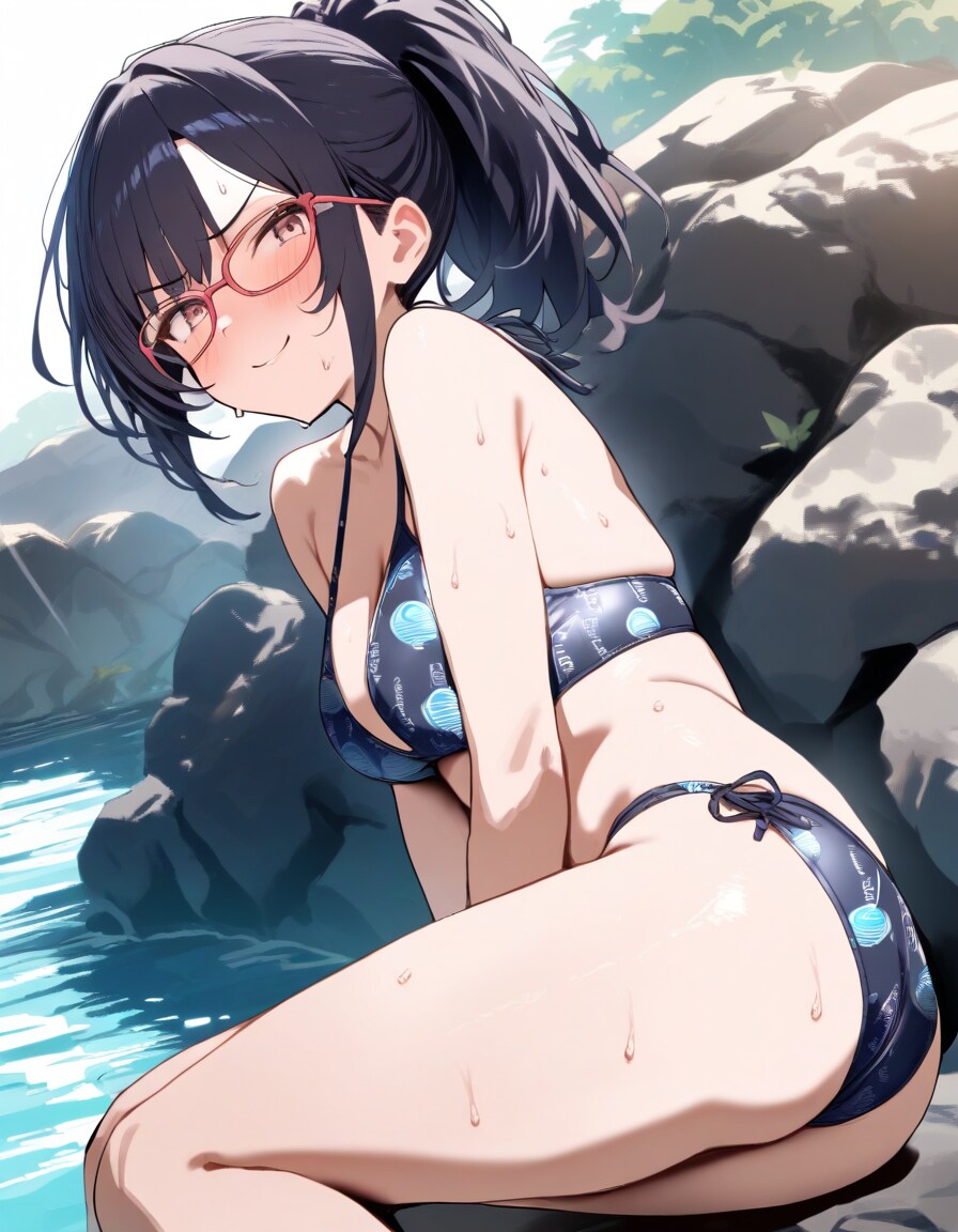 なお画像はすべてワンチャン勝負でうまく行ったものを採用していますので、お手元のAI画像生成環境、モデル、LoRA、サンプラー、スケジューラー、シード値などの設定により、投稿画像のようにならなかったり、水着ばかりでなく人物や背景などにも影響を及ぼす場合がありえます。あしからず。