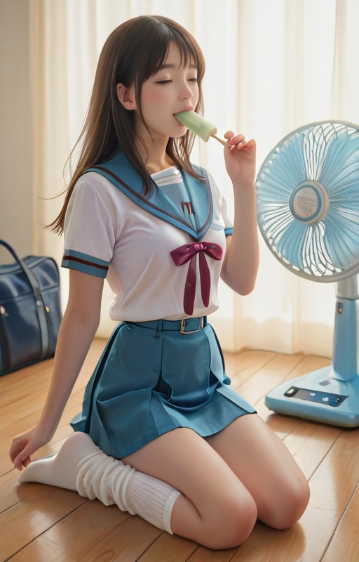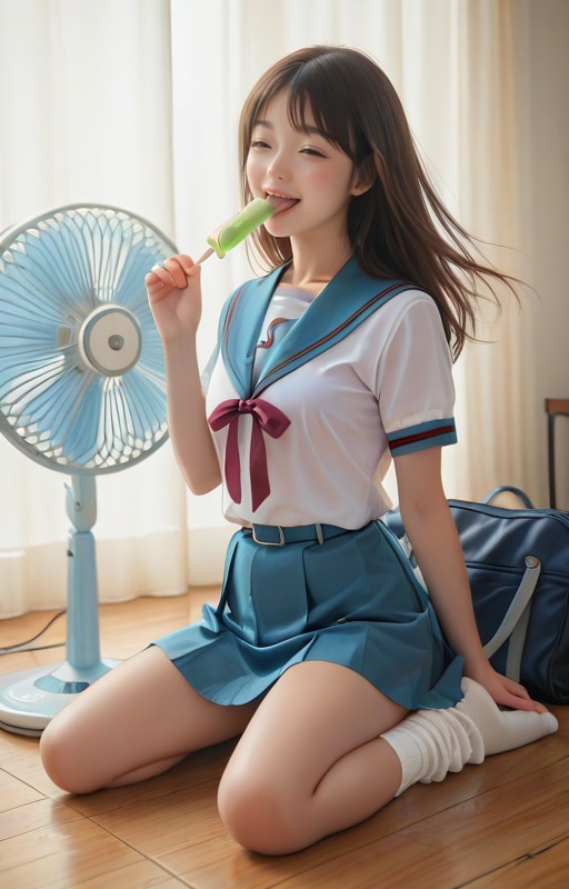 いつまで暑いのでしょうか?学校帰ったらアイスに扇風機もちろんクラー入りで!