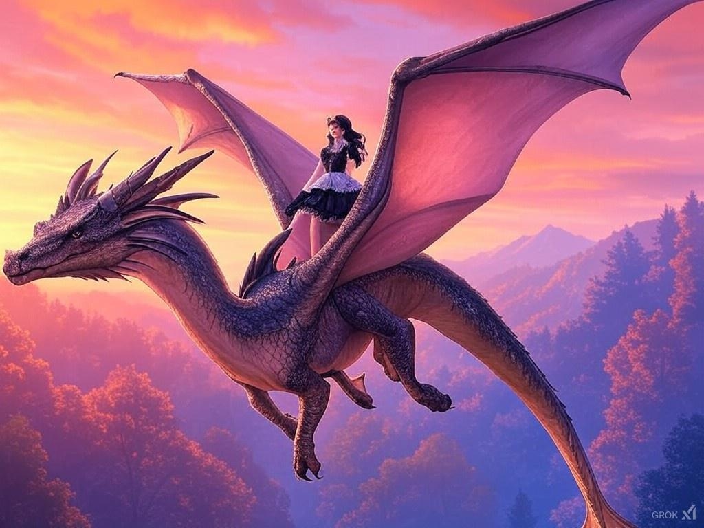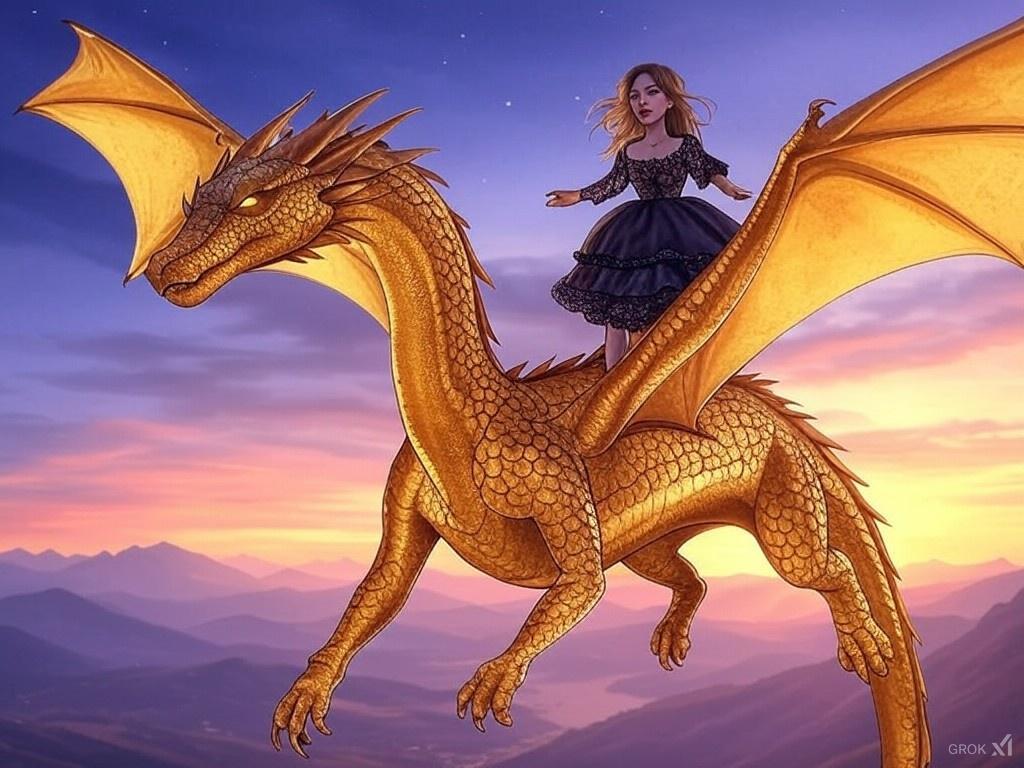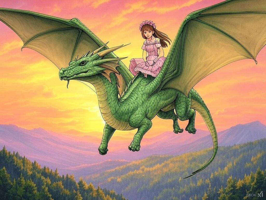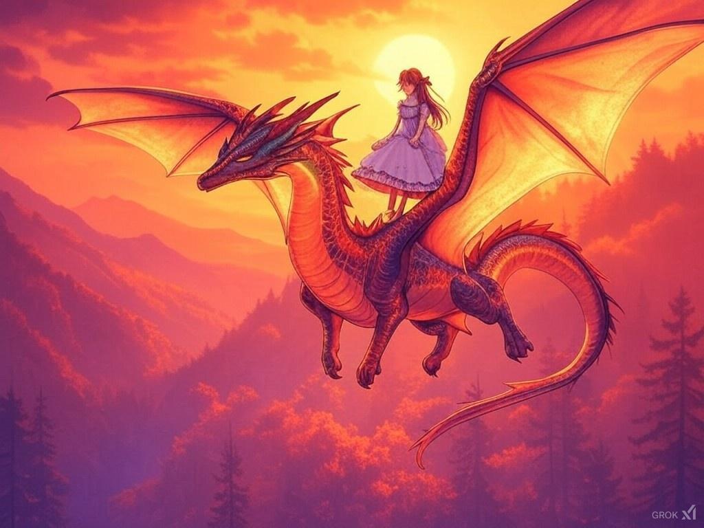 「夕暮れの龍と少女」🌅✨