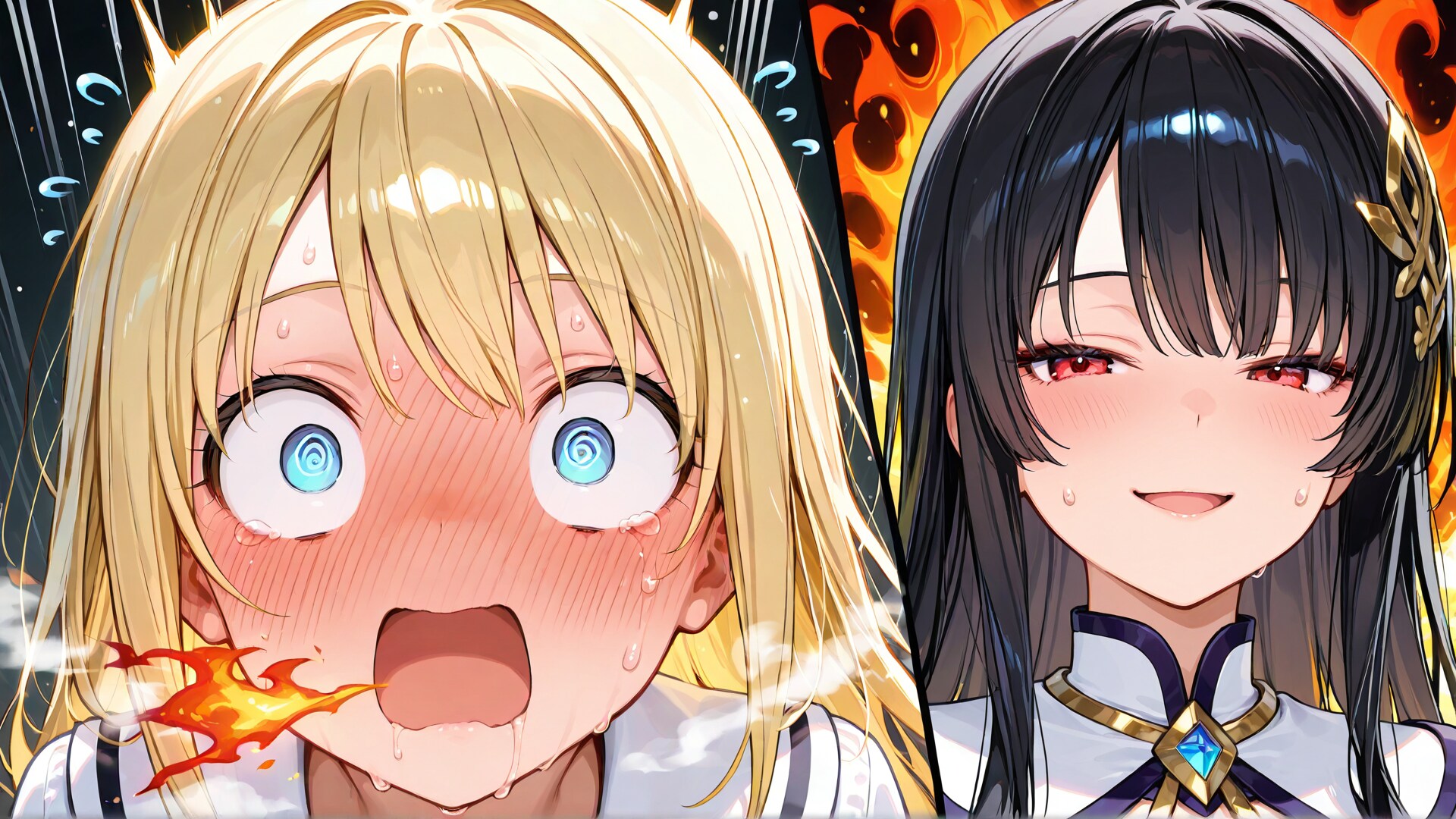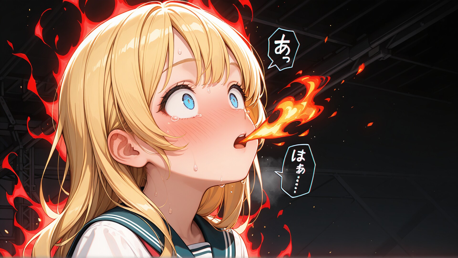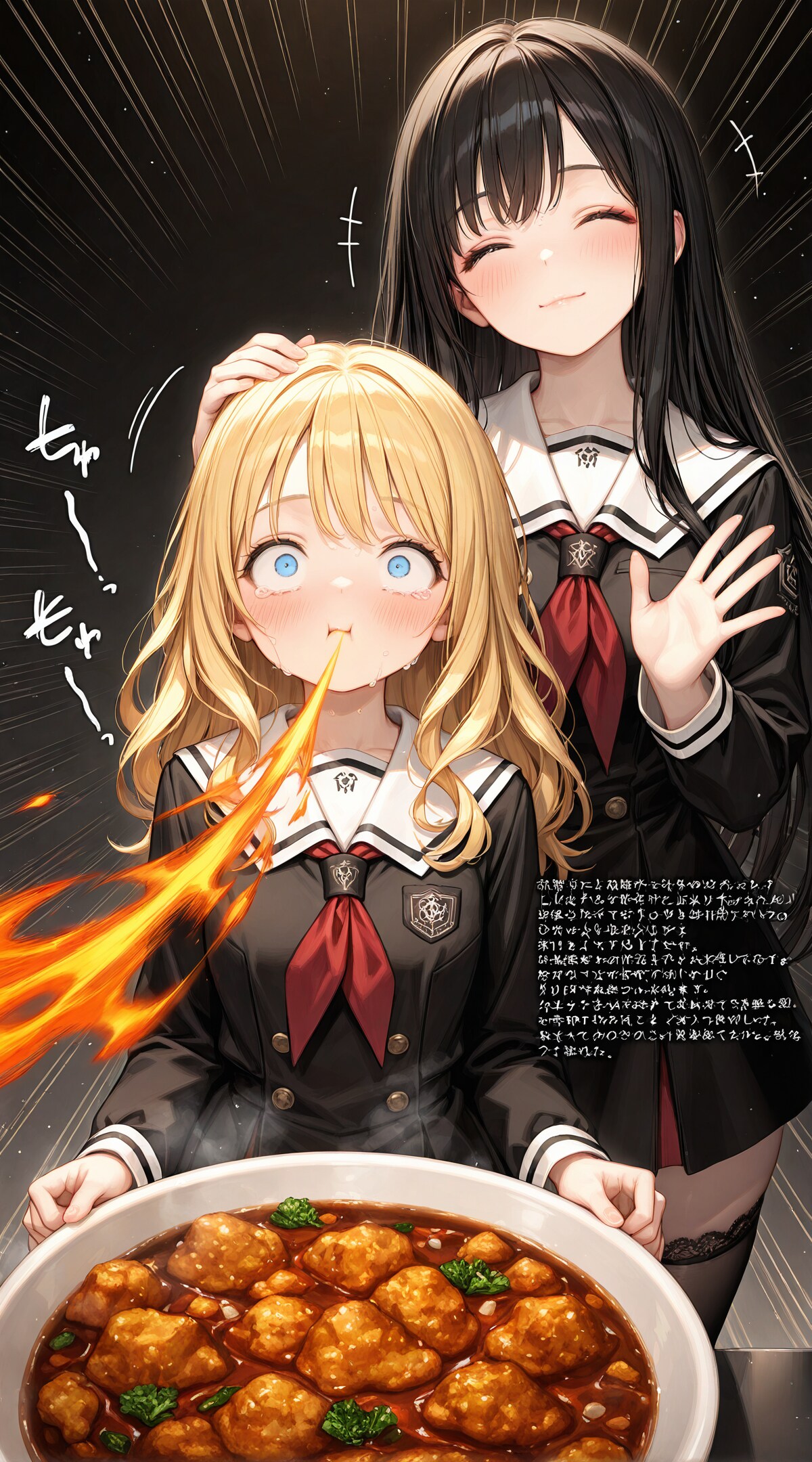カレーのあまりの辛さに火を吹くちちぷいちゃんとその可愛らしさに興奮するししょちゃん (GPU学園)