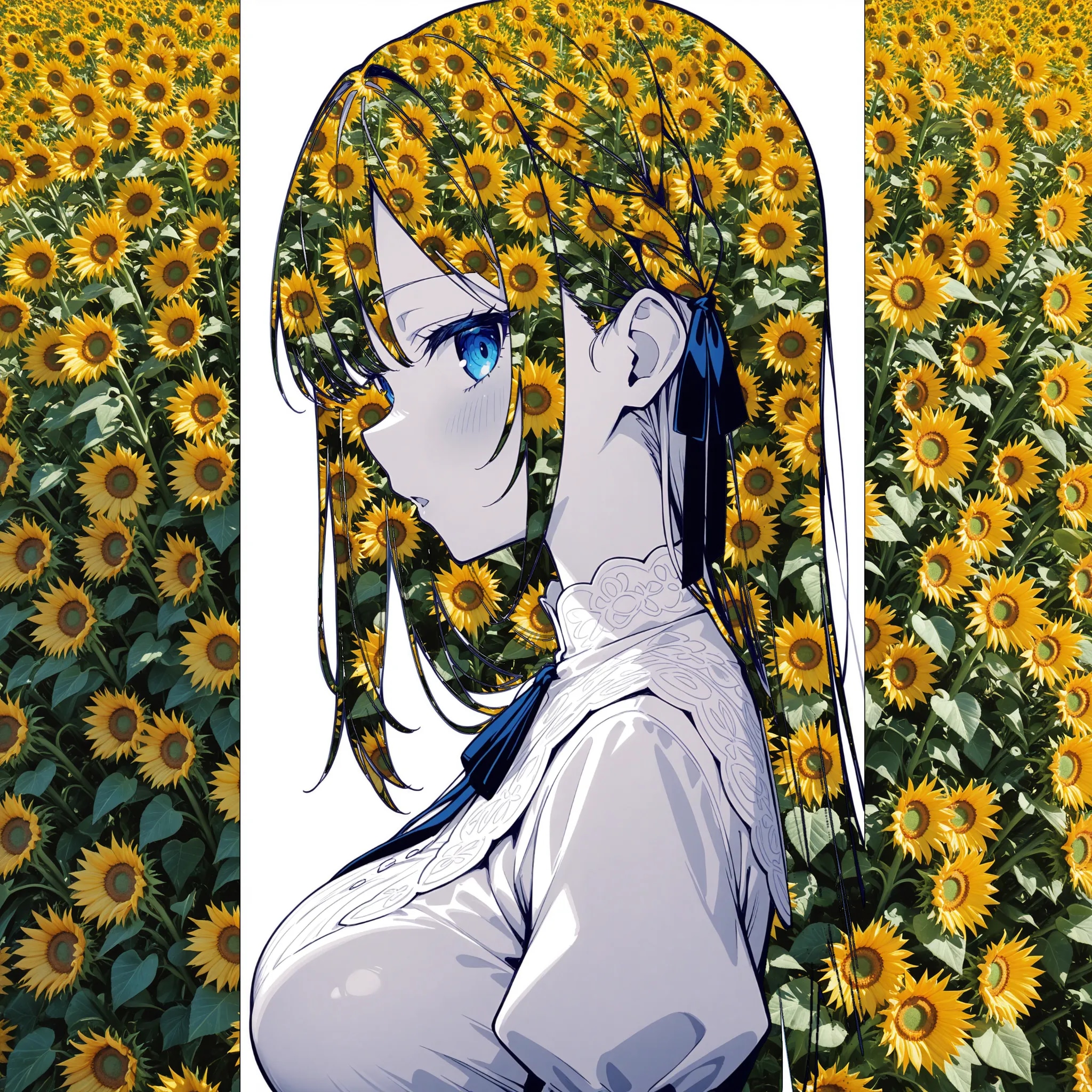 最初ネモフィラで作ってたのですが、投稿企画にひまわりあったので合わせました