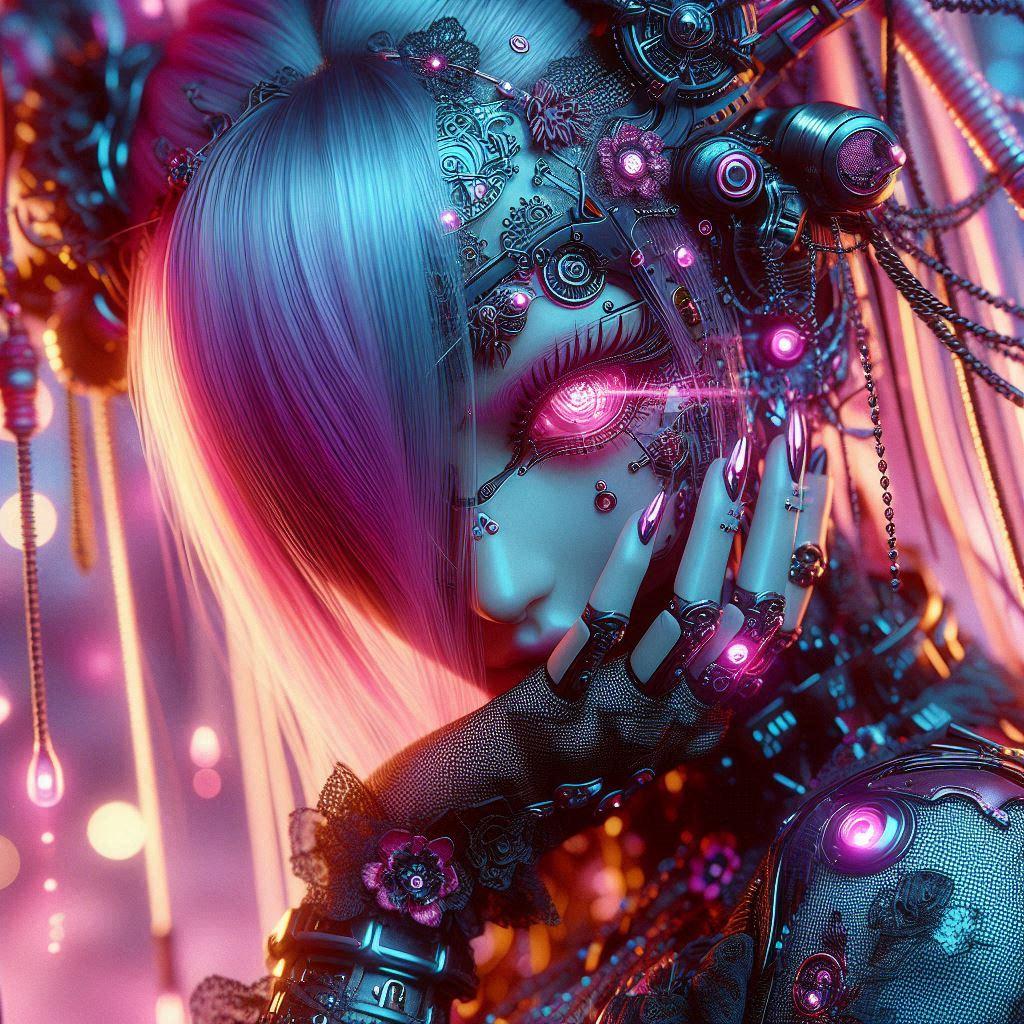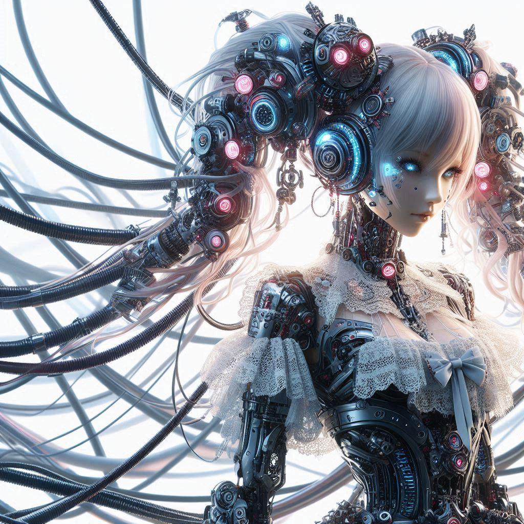 プロンプトに「cyborg girl」とあるが、アンドロイドっぽい。