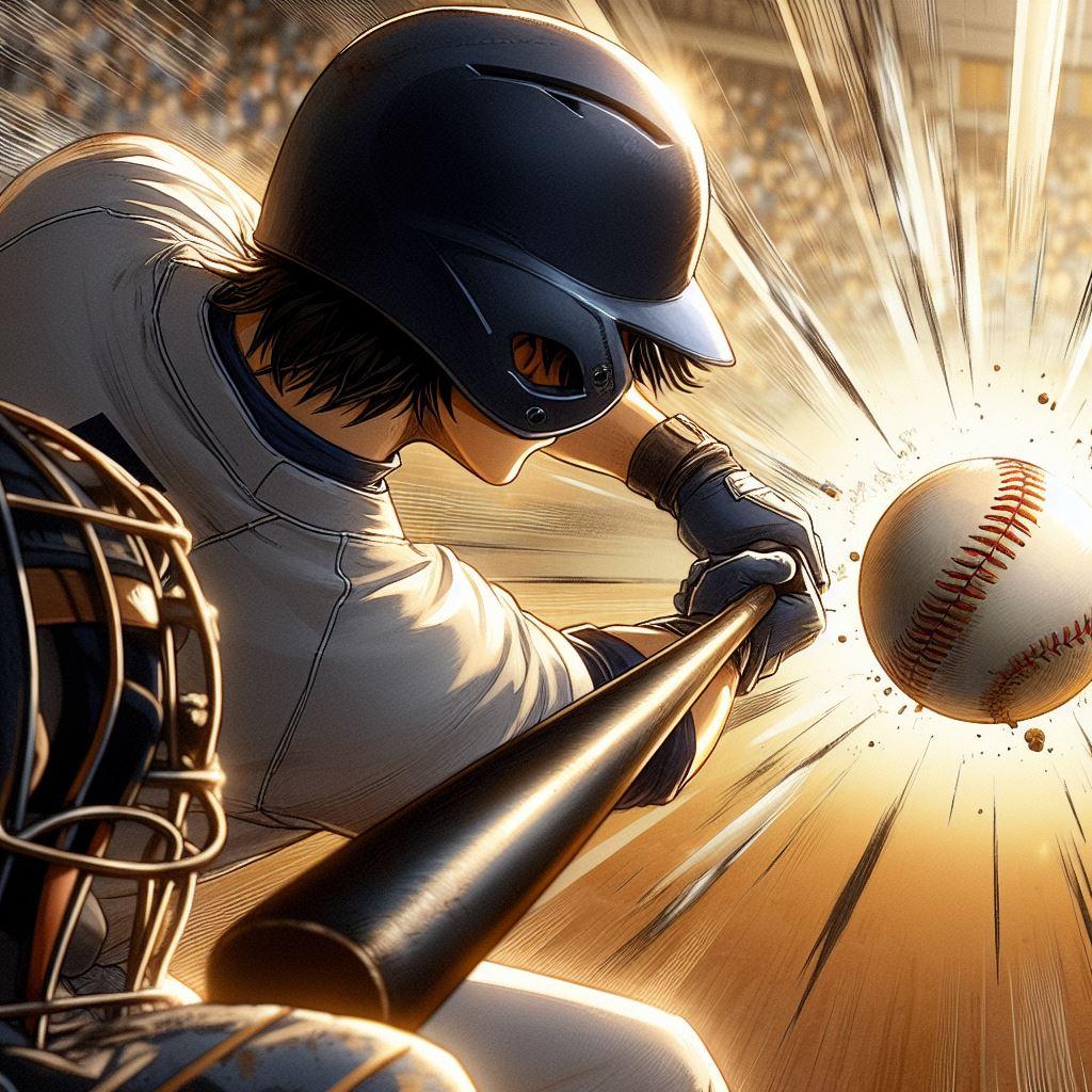 消える審判、キャッチャーに向かってバットをふるバッター。