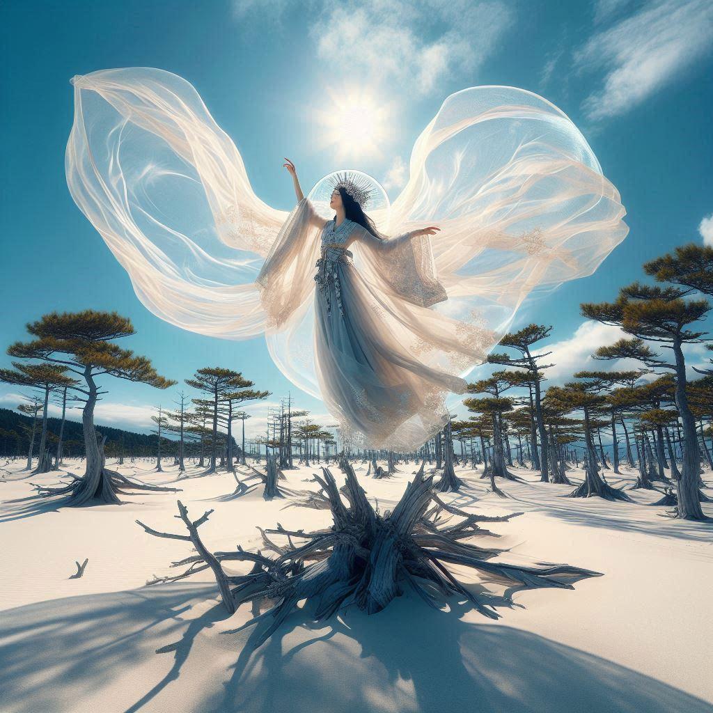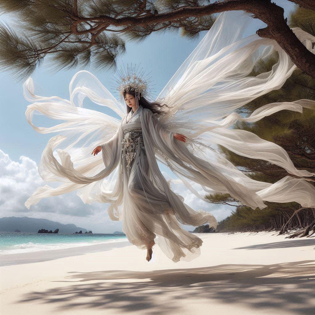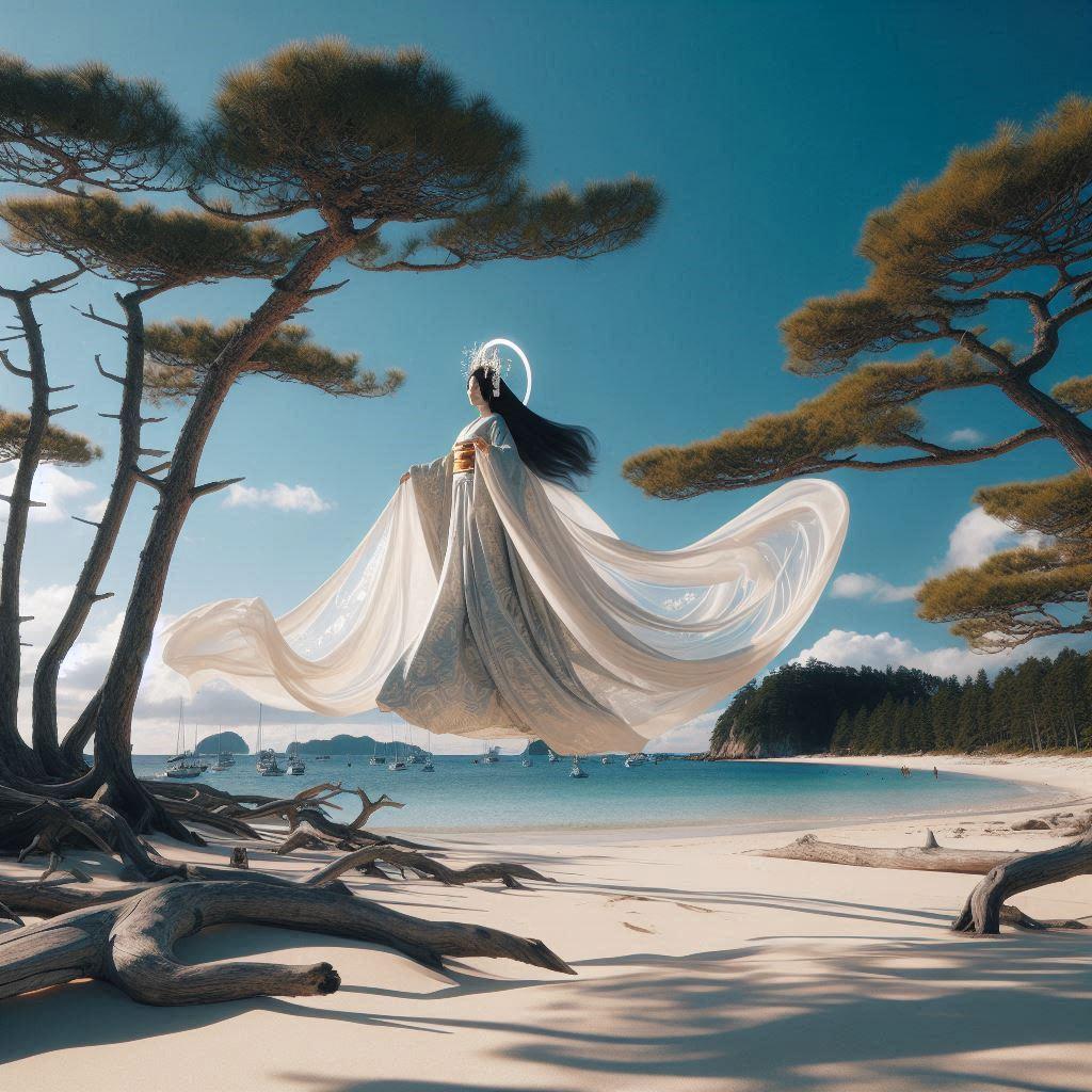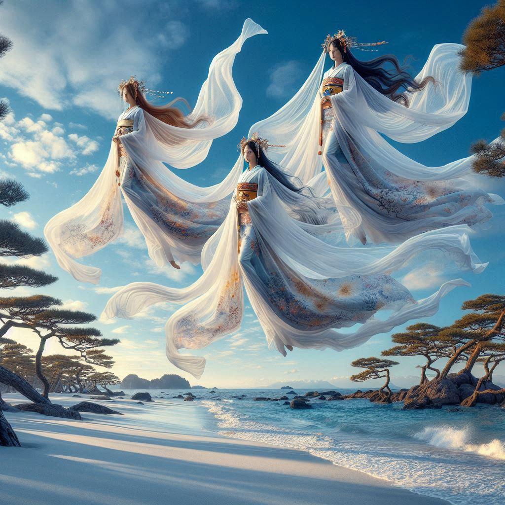 神の使いである天使について、日本で天使に相当する存在を考えたときに思い浮かんだのが天女でした。