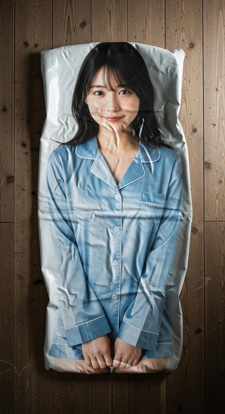 イメージとしては、空気の抜けた状態のフロート(浮き輪)とか抱き枕とかです。